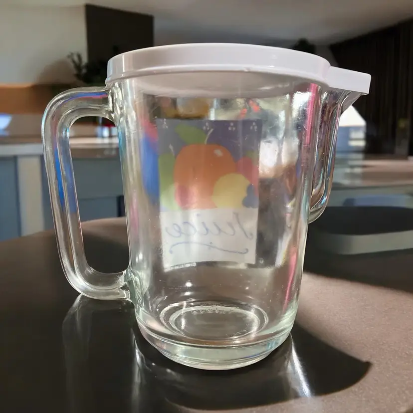 32oz Vtg Glass Juice Pitcher Carafe with lid Lillian Vernon Made in Taiwan