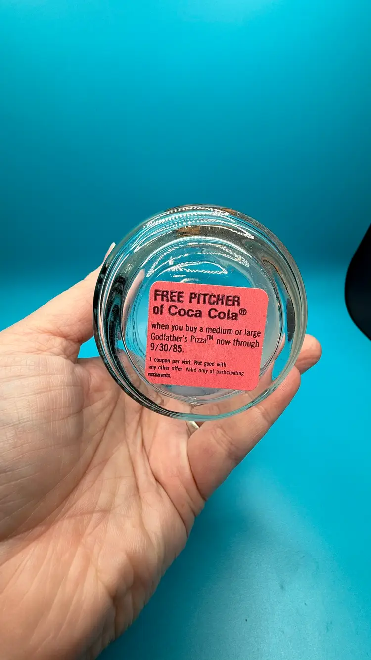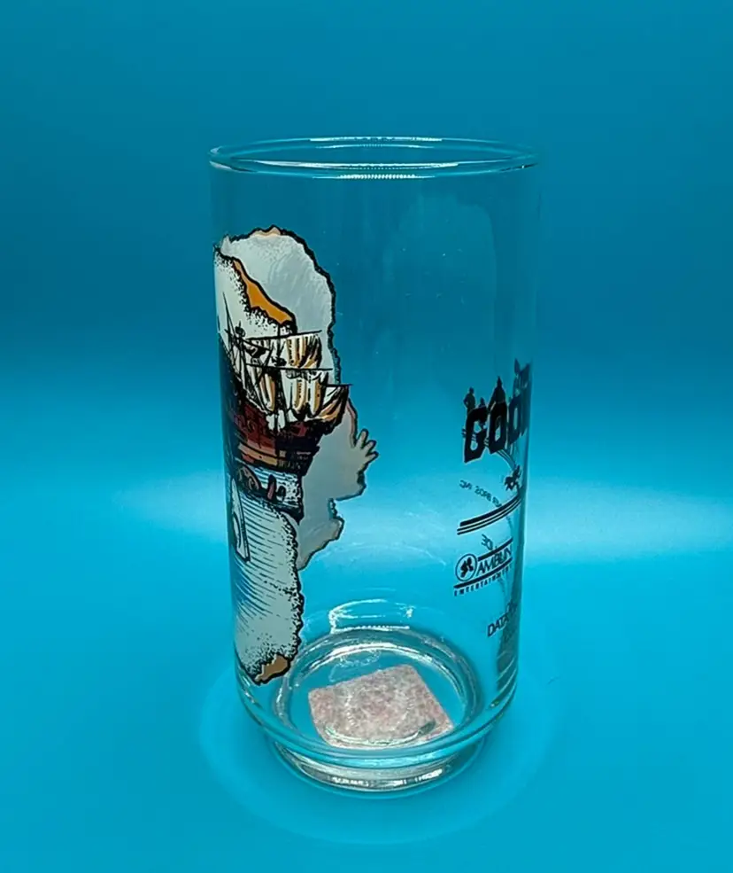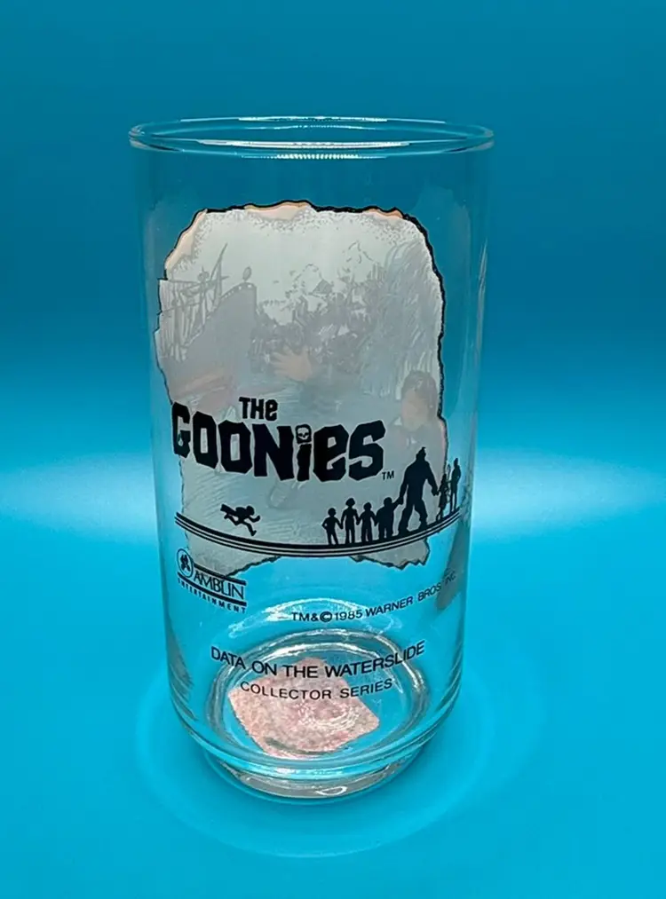 VTG 1985 The Goonies Data On The Water Slide Collectors Glass W/Original sticker from Godfather’s Pizza.