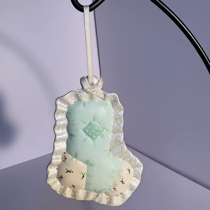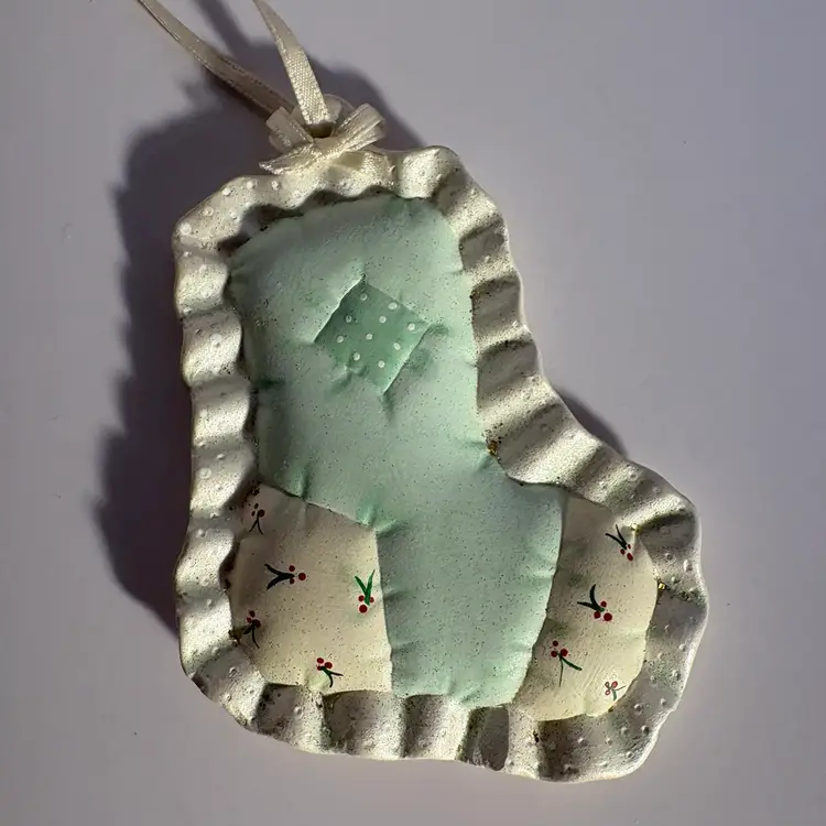 Vintage 1987 Signed Handmade Hand Painted Ceramic Stocking Christmas Ornament
