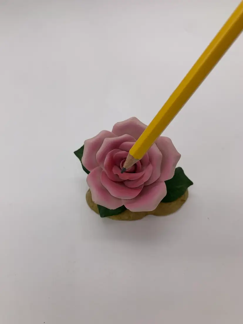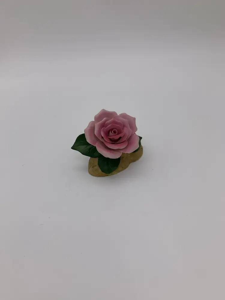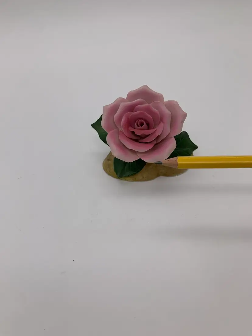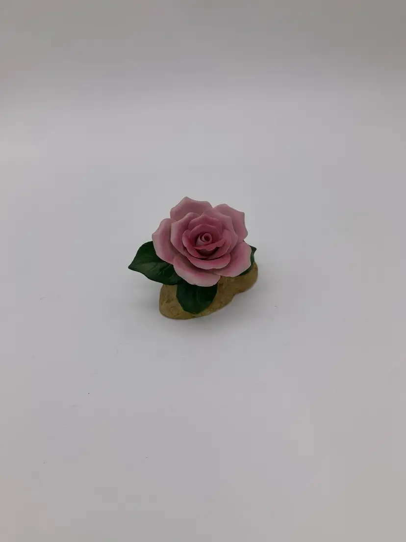 This vintage 1988 pink porcelain Andrea Rose figurine by Andrea Sadek is a small collectible piece that measures 4" in length and 3" in height. It features a hand-painted matte finish with a 3D effect, depicting the character Andrea Rose in a realistic style. The figurine is handcrafted, making it a unique addition to any room in the house, particularly the bedroom, living room, or study. With its pink, green, and beige color palette and delicate design, this collectible piece embodies a theme of art, flowers, love, and romance, making it a charming and nostalgic decor item for lovers of vintage and handmade pieces. This beautiful flower is very delicate and does appear to have a few very small flea bites and is in good condition for its age, this is usually common yet hard to find these in This good of condition. Please see all pictures for details.