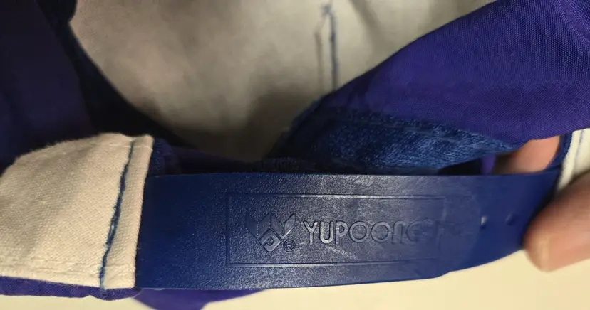 The color is Purpleish - blue. It looks blue in the photos, but to the naked eye - it is purple, although the rope is blue.