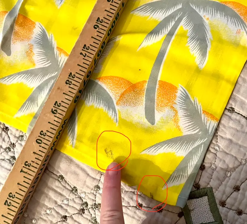 Please look at all the photos and short video clip of it being opened to photograph measurements and fully open front and back prior to deciding to make a purchase. This is a pre-owned item, unused . And, VINTAGE (20 years +) is seldom perfect and when the package was opened (as shown in the video clip), it is noted factory mark on the hem as circled. Buyer is strongly encouraged to review the photos and decide for themselves its condition as my interpretation may not align with yours. Prior to a purchase, questions not answered in photos, details, description are welcome.