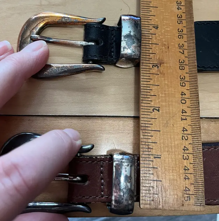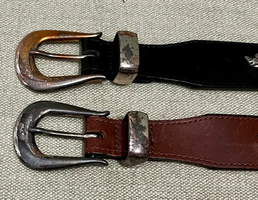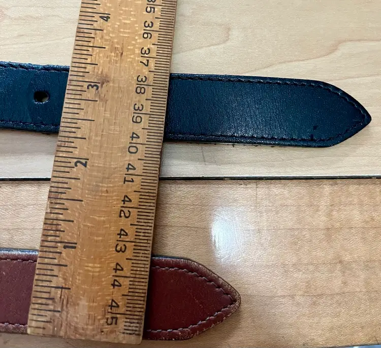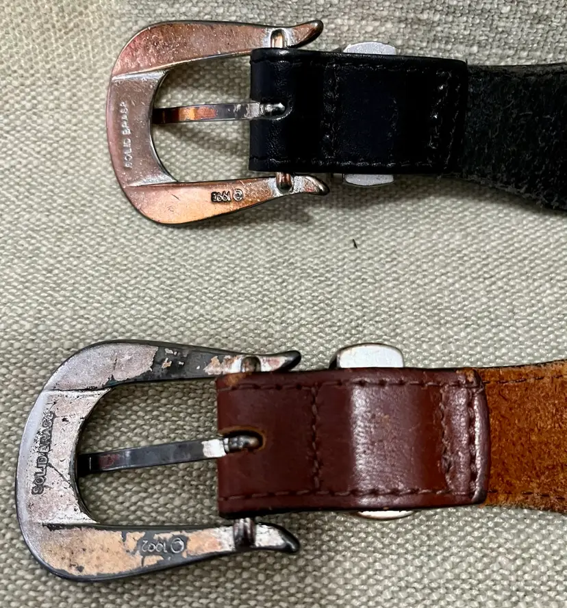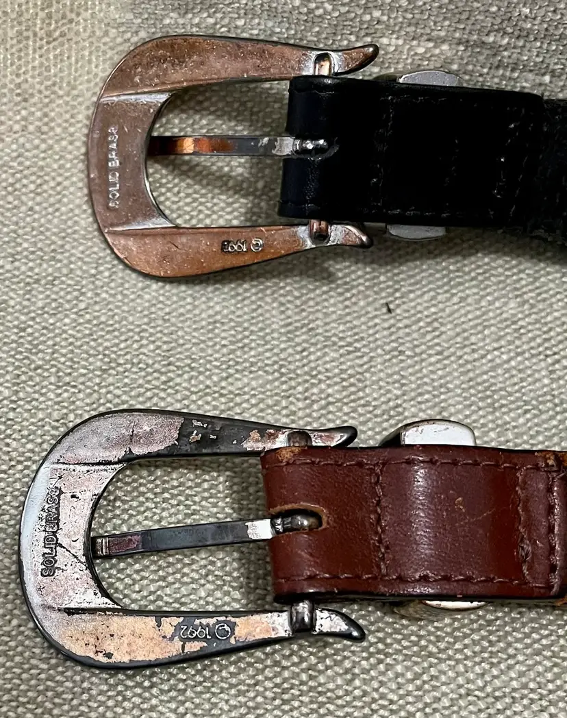 Please look at all the photos prior to deciding to make a purchase. These are used / pre-owned belts. And, VINTAGE (20 years +) is seldom perfect. These show wear to the solid brass in particular but the leather has some wear as well. All shown in photos. Buyer is strongly encouraged to review the photos and decide for themselves its condition as my interpretation may not align with yours. Prior to a purchase, questions not answered in photos, details, description are welcome.
