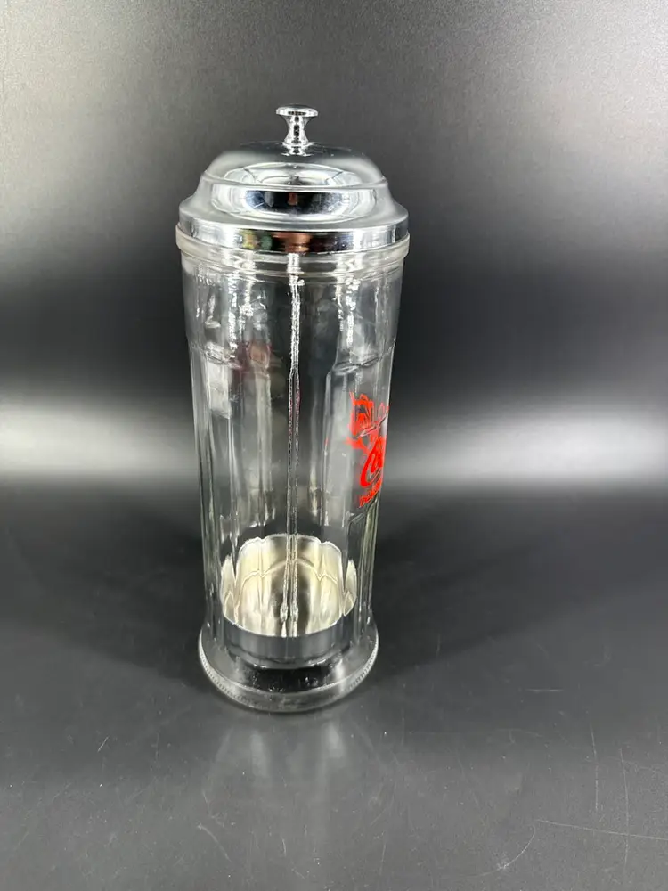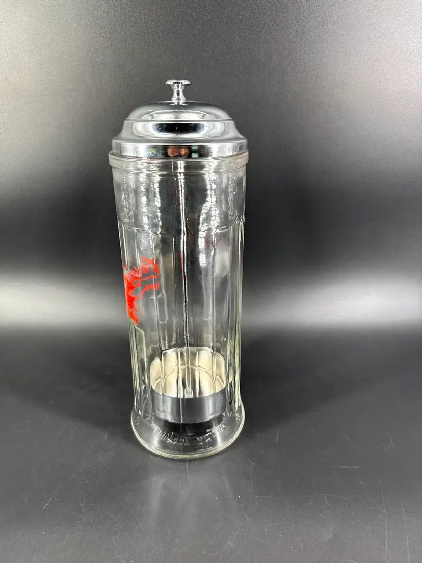 It is 11.25" tall (with lid on) and measures 4" in diameter. It is in excellent condition. There are no cracks, breaks, chips or repairs. (See photos).