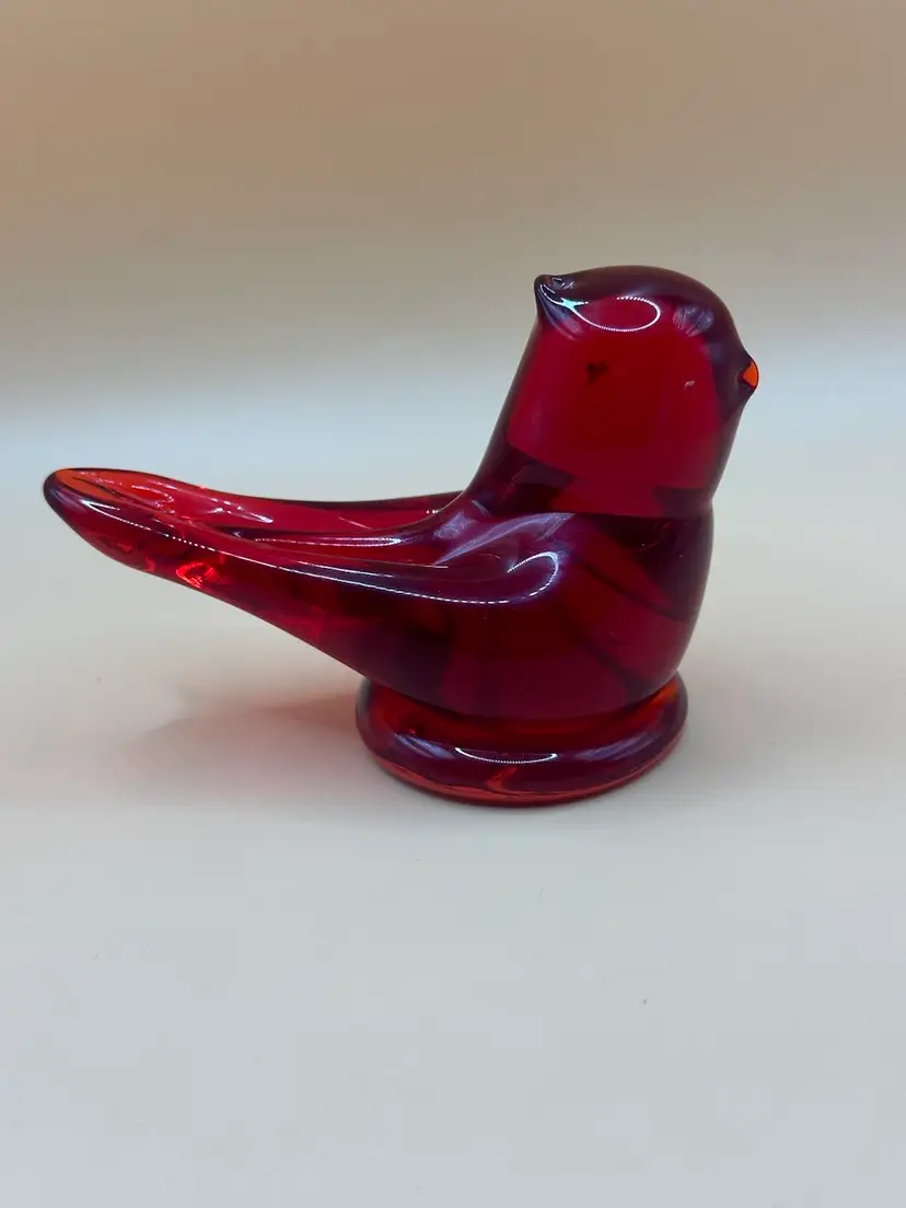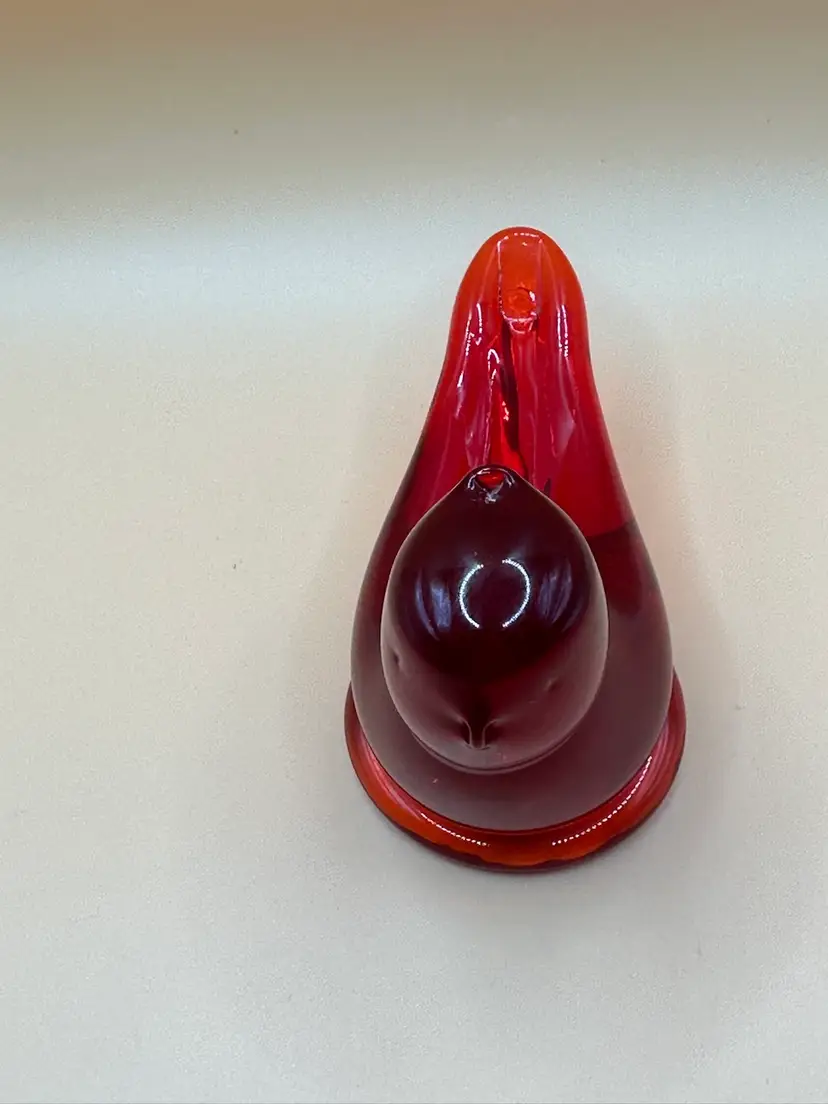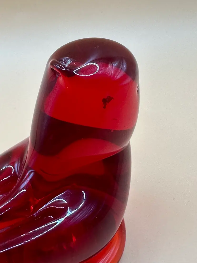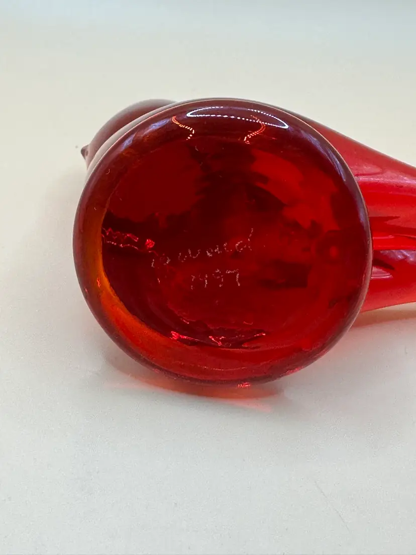 This beautiful vintage figurine is a true work of art. Handmade in 1997 by W. Ward, it features a stunning red cardinal love bird design with intricate engraving and a high gloss finish. Measuring 3.5 inches in length, 2 inches in height, and 2 inches in width, it is a perfect addition to any decorative collection. No chips or cracks there is a flaw in the glass in the head piece see pictures it’s inside the glass.