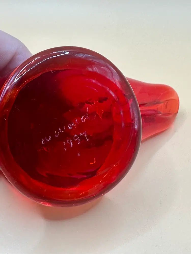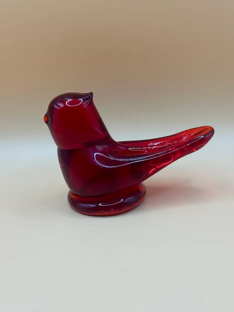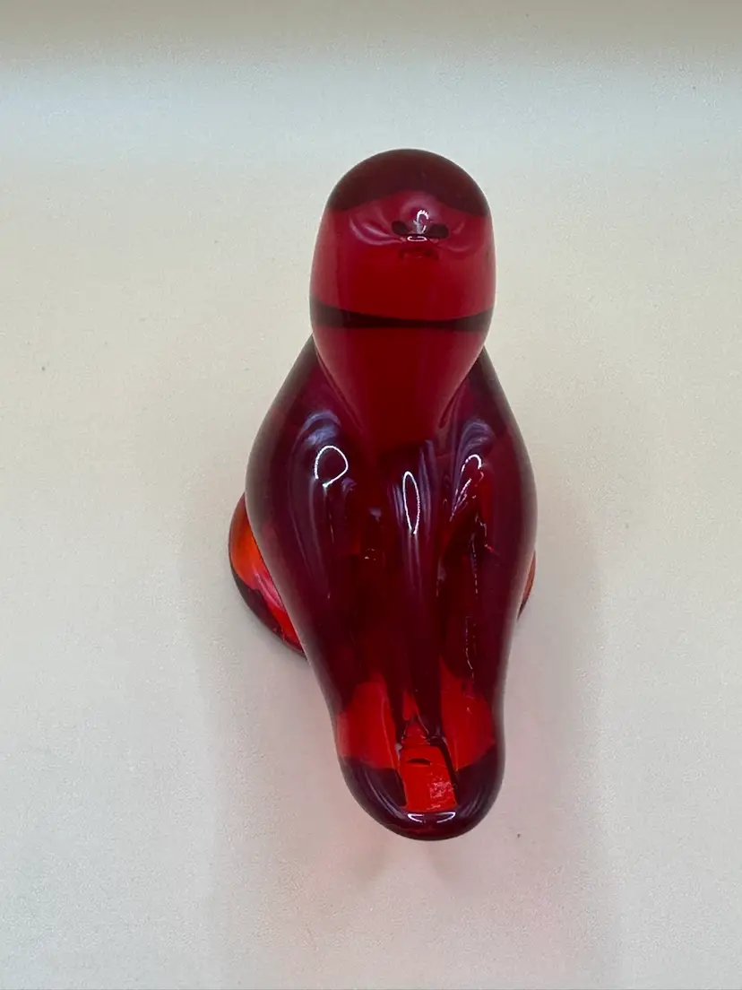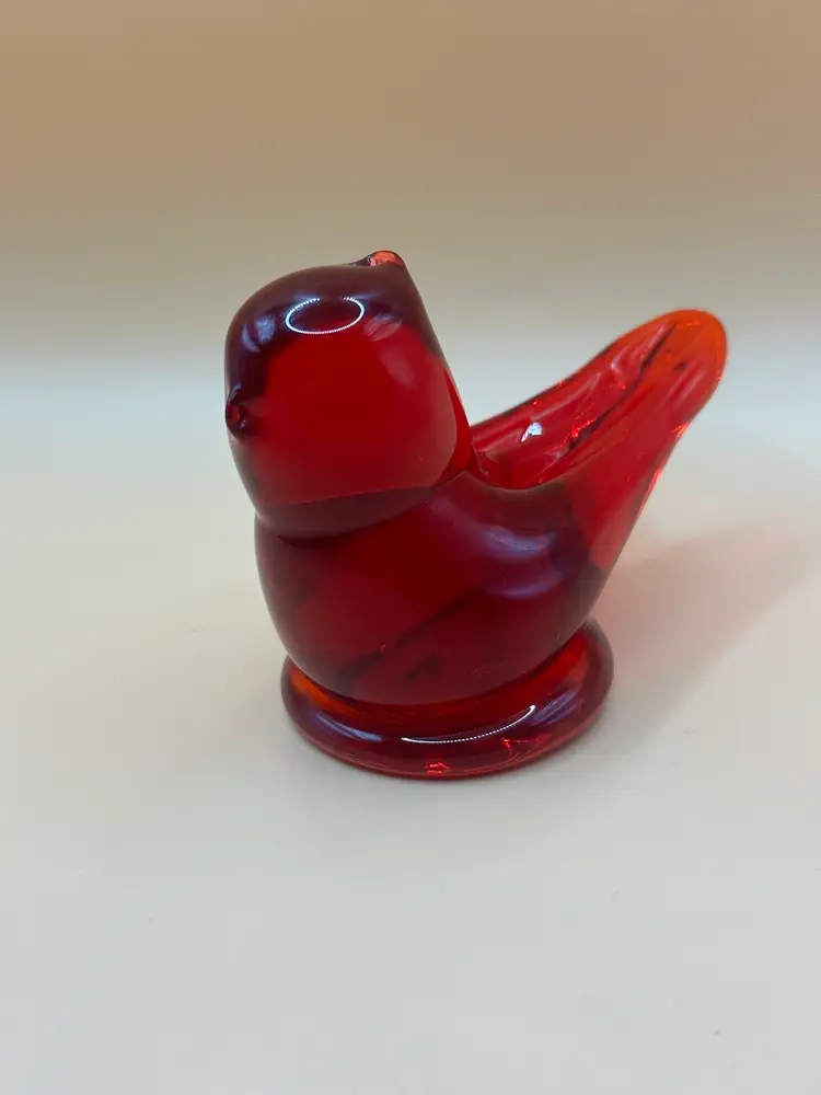 This beautiful vintage figurine is a true work of art. Handmade in 1997 by W. Ward, it features a stunning red cardinal love bird design with intricate engraving and a high gloss finish. Measuring 3.5 inches in length, 2 inches in height, and 2 inches in width, it is a perfect addition to any decorative collection. No chips or cracks there is a flaw in the glass in the head piece see pictures it’s inside the glass.