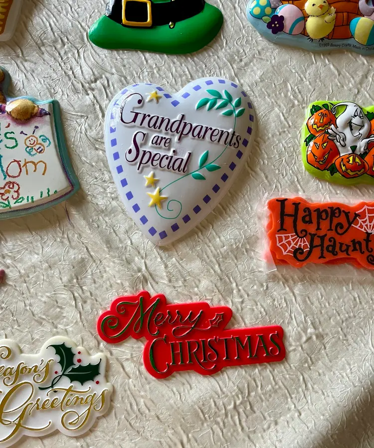 Vtg 1999 Y2K Store Bakery Crafts Cake Toppers Halloween Christmas Valentines Mothers Day Grandparents Day New Years St Patrick’s Day