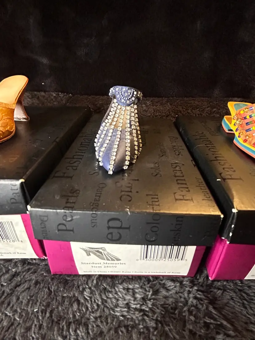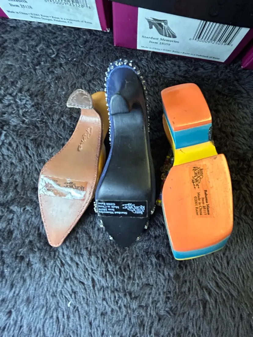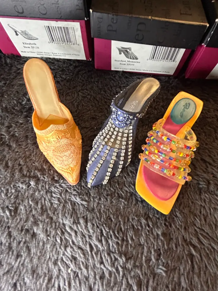 These items are decorative miniature collectible shoes from the "Stardust Memories" collection.