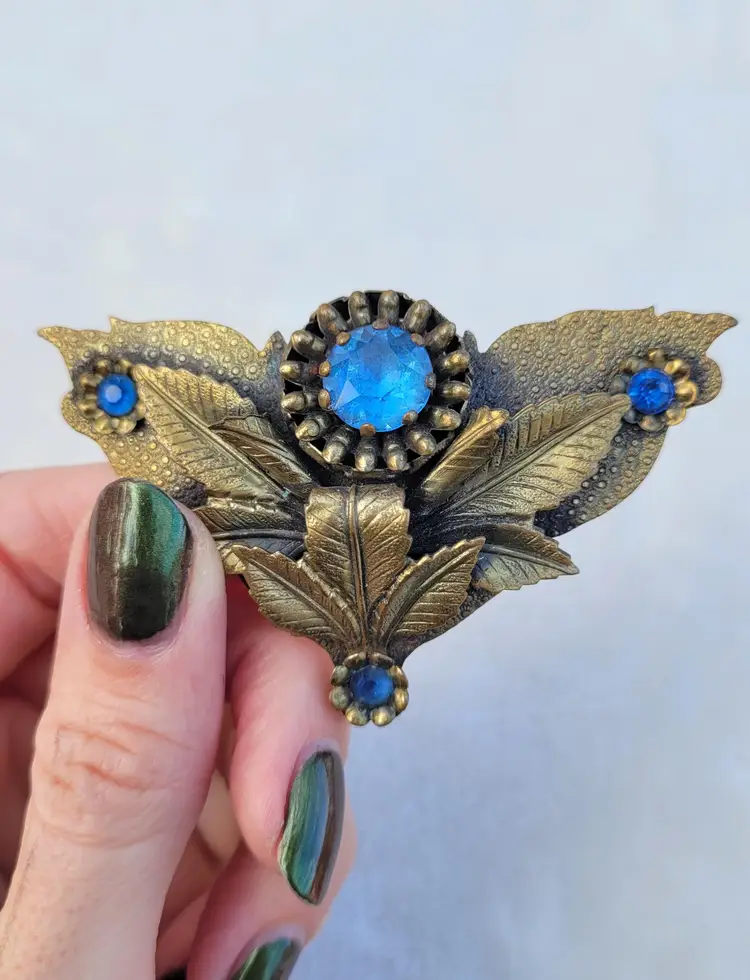 Gorgeous 1930s depression-era brooch in a classic, bold art deco design. It is in good condition with a bit of wear consistent with age, please see pictures for details and measurements.