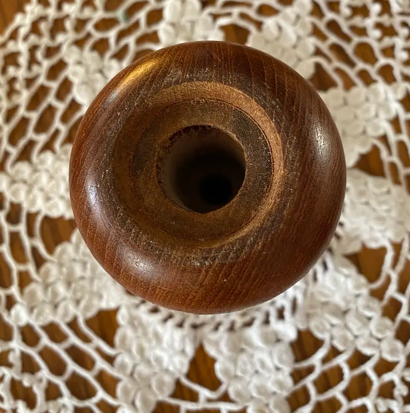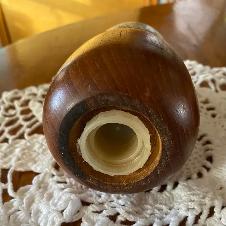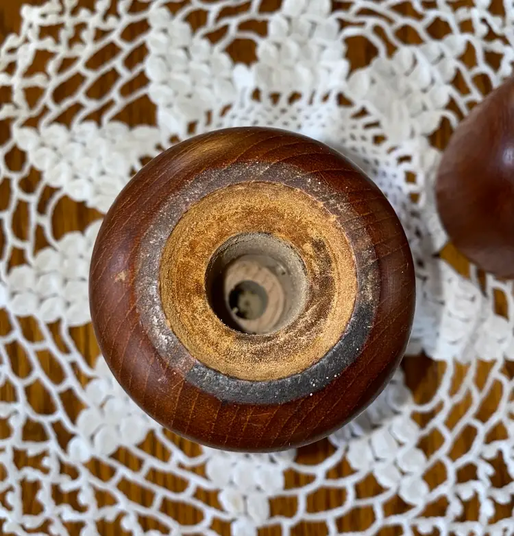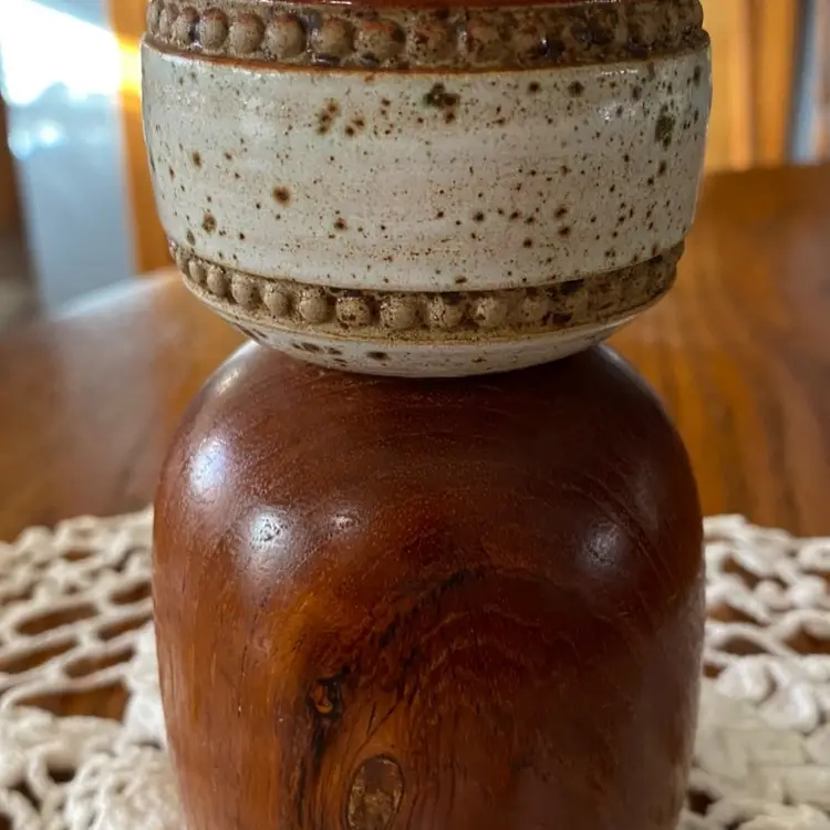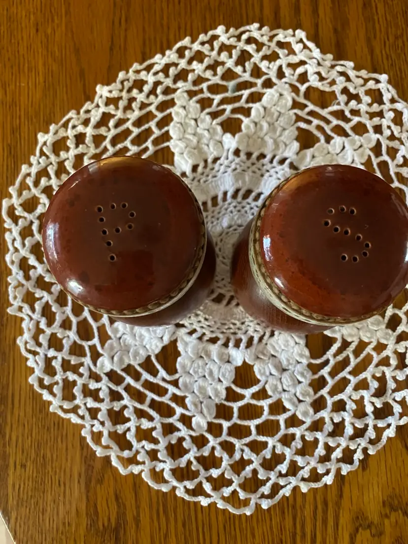 Beautiful Denby teak wood and pottery salt & pepper shakers. These are in very nice vintage condition. One of the stoppers has been replaced with a cork but it is still functional.