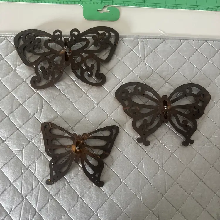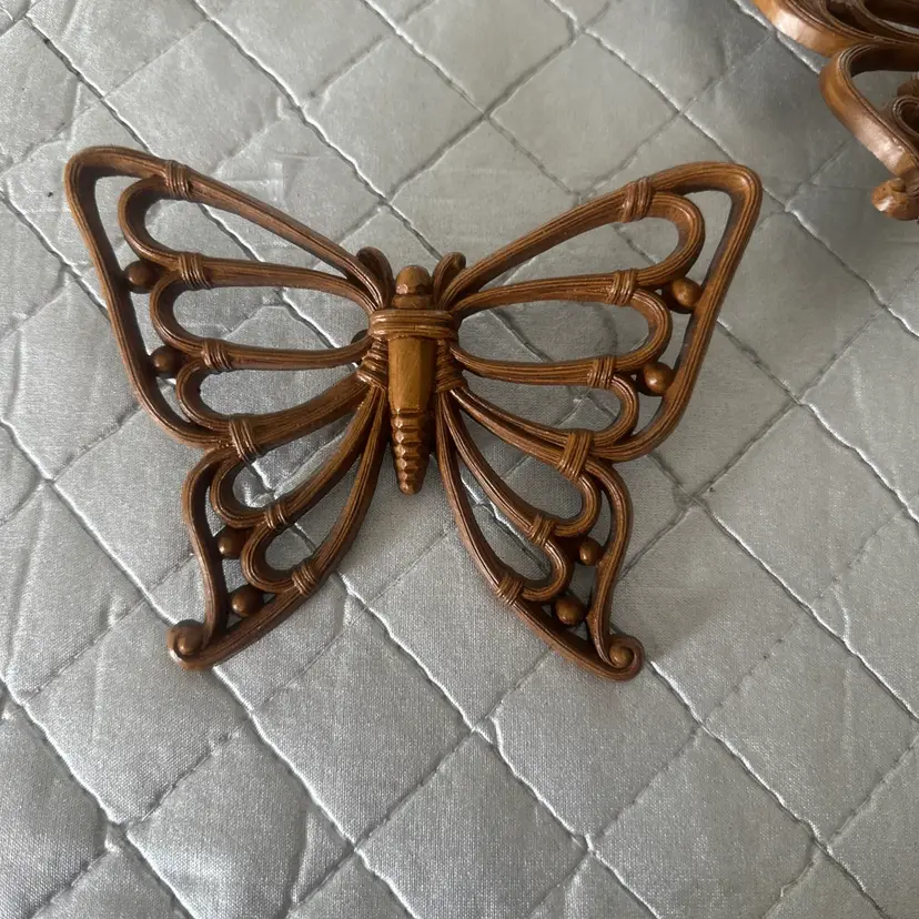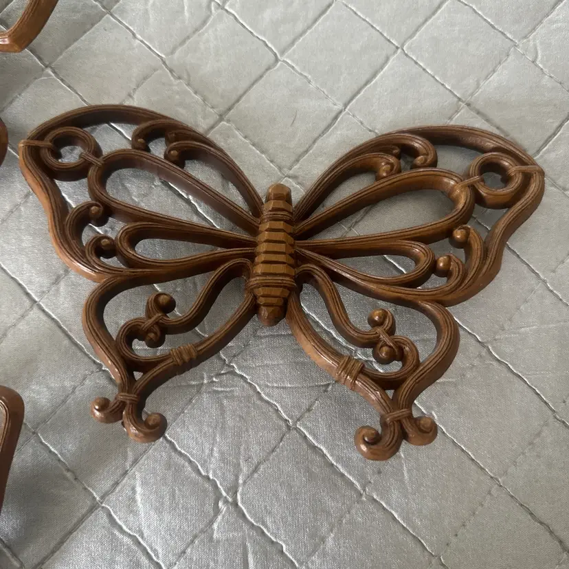 This vintage 1970s Dart Inc Homco set of 3 plastic butterfly wall hangings adds a touch of retro charm to any room in your home. The plaques feature a brown color and a 3D effect, creating a unique and eye-catching display. Made in the United States, these hanging decorations are perfect for those who appreciate butterfly-themed decor and 1970s style. Ideal for any space, these wall hangings are ready to hang and will surely be a conversation starter in your home.