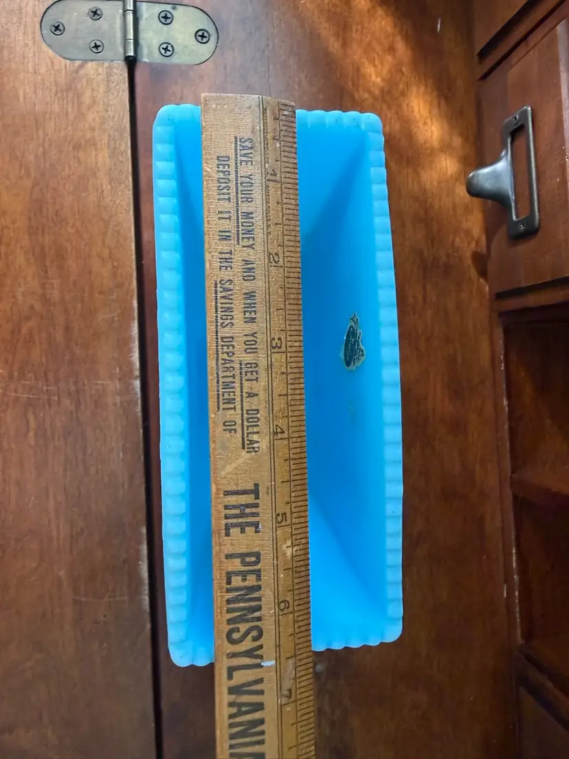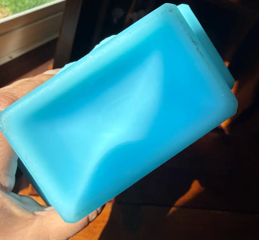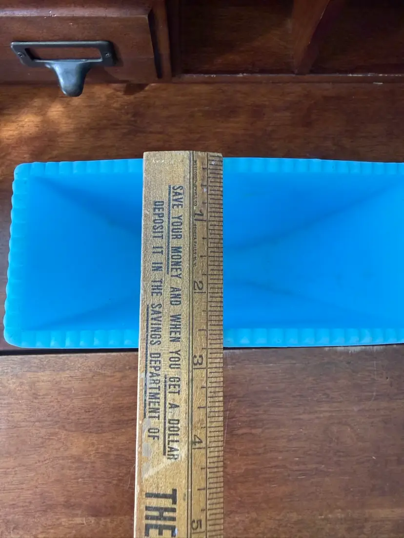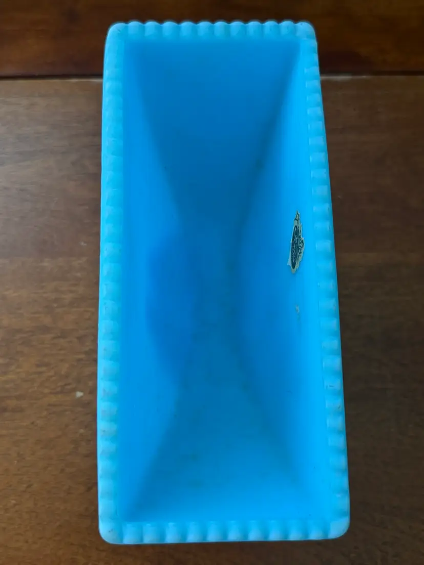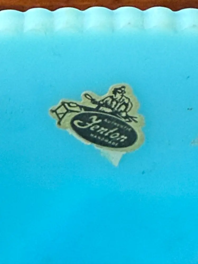 • Vintage Fenton blue satin glass planter • Embossed lovebirds on a leafy branch motif • Scalloped / ruffled rim with soft satin finish • Retains original Fenton foil sticker • Impressed Fenton mark on the bottom • Measures approx. 4 3/4” x 6 1/2” x 2 3/4” • Beautiful color, crisp embossing, and smooth satin texture • No chips or cracks noted • Ideal for collectors of Fenton Art Glass, satin glass, or bird‑themed décor • Lovely for display, vanity organization, faux florals, or shelf styling