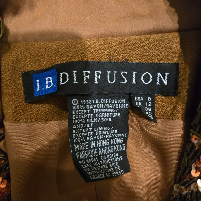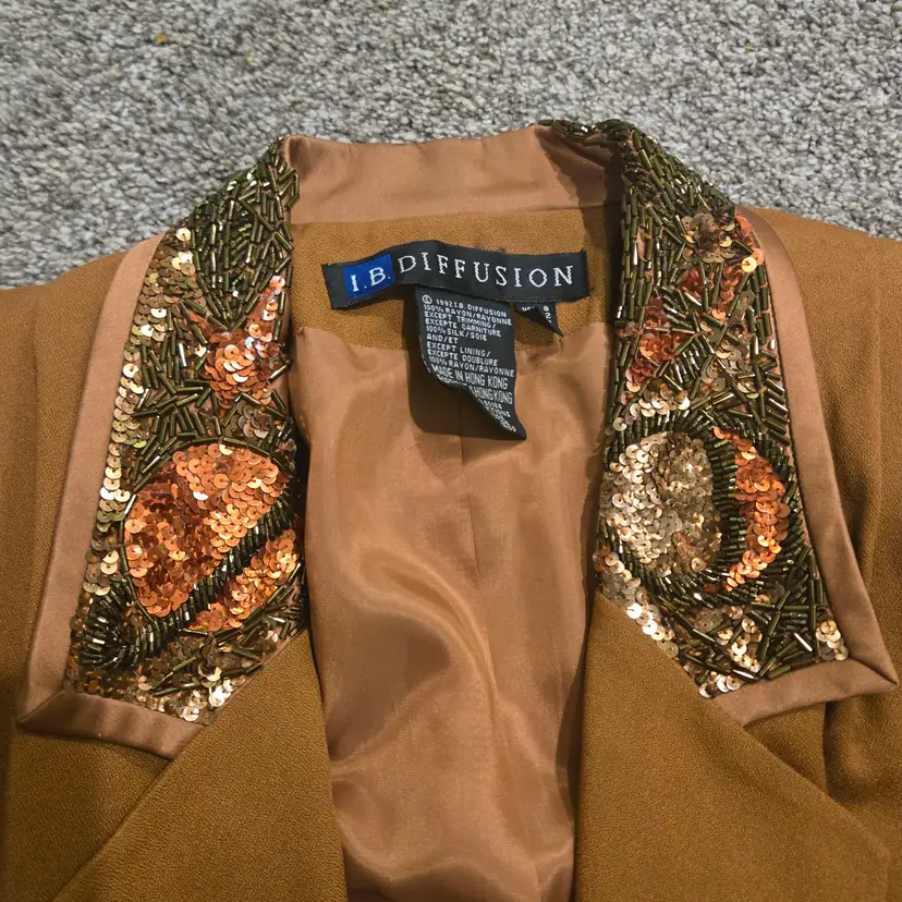 Vtg 90s IB Diffusion Carmel Blazer Jacket Womens 8 Black Sequin Beaded Lapel