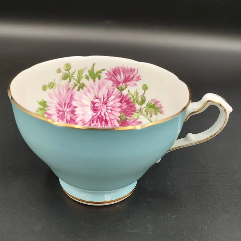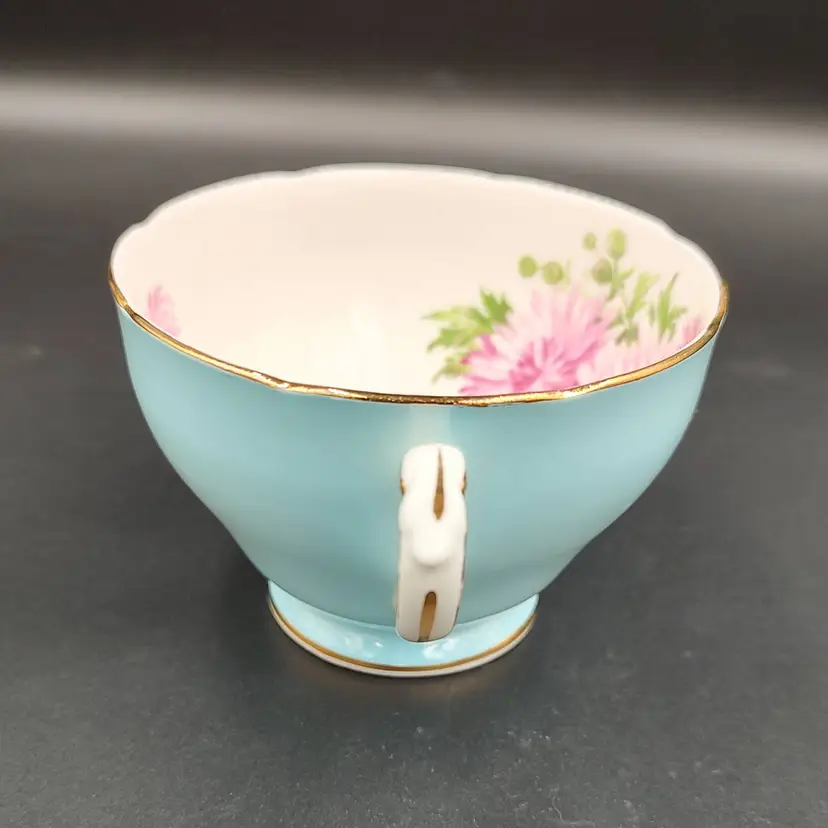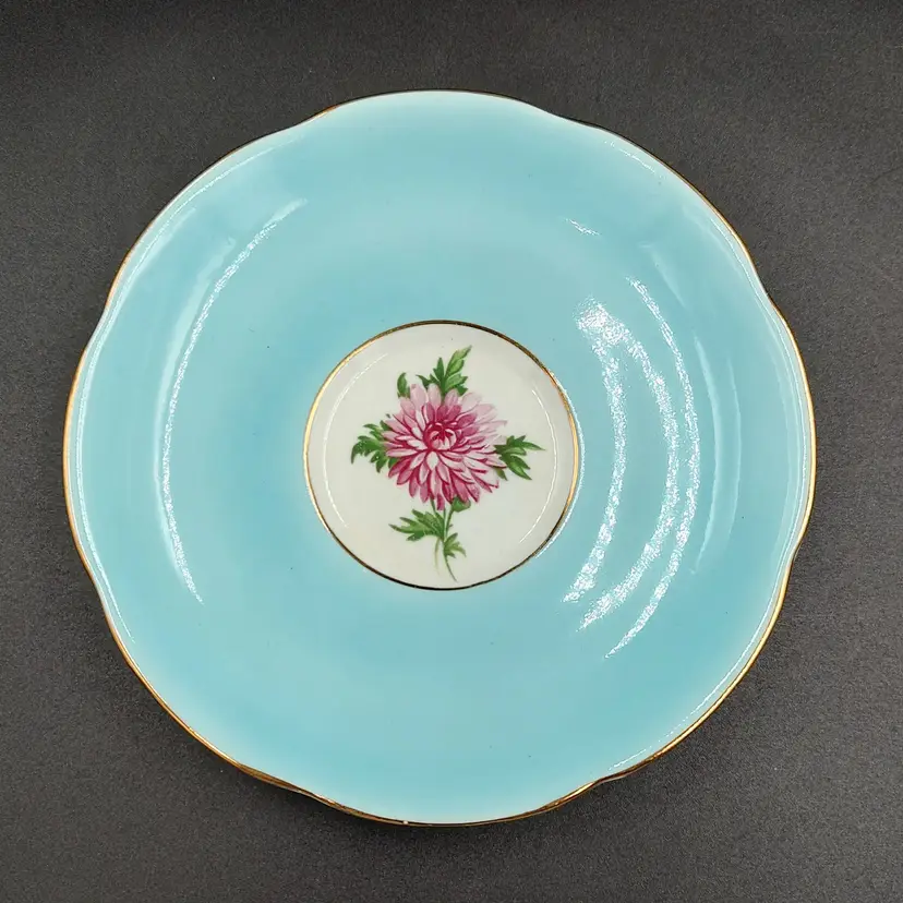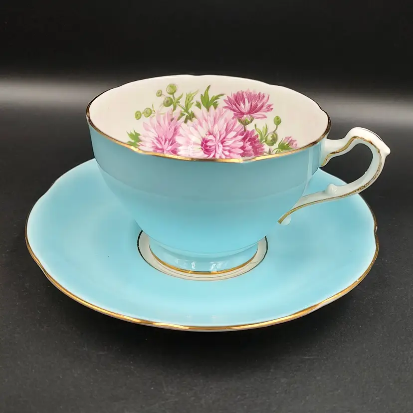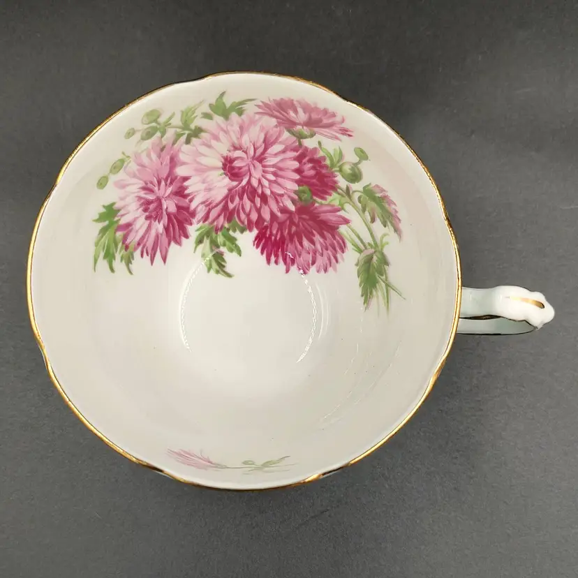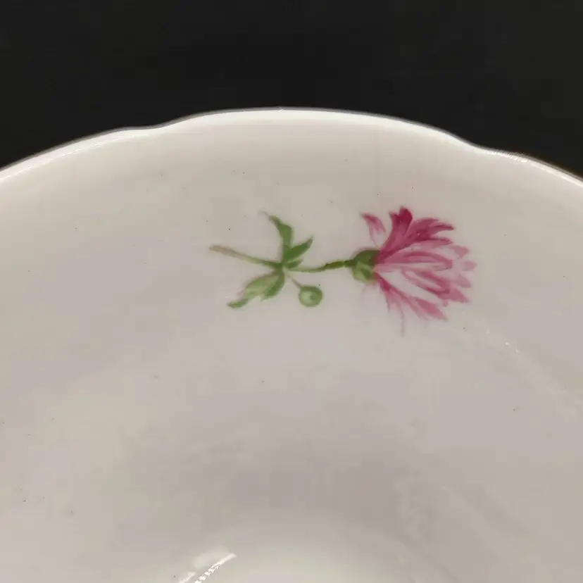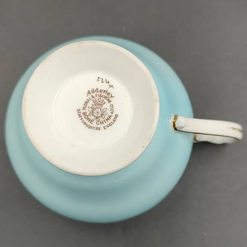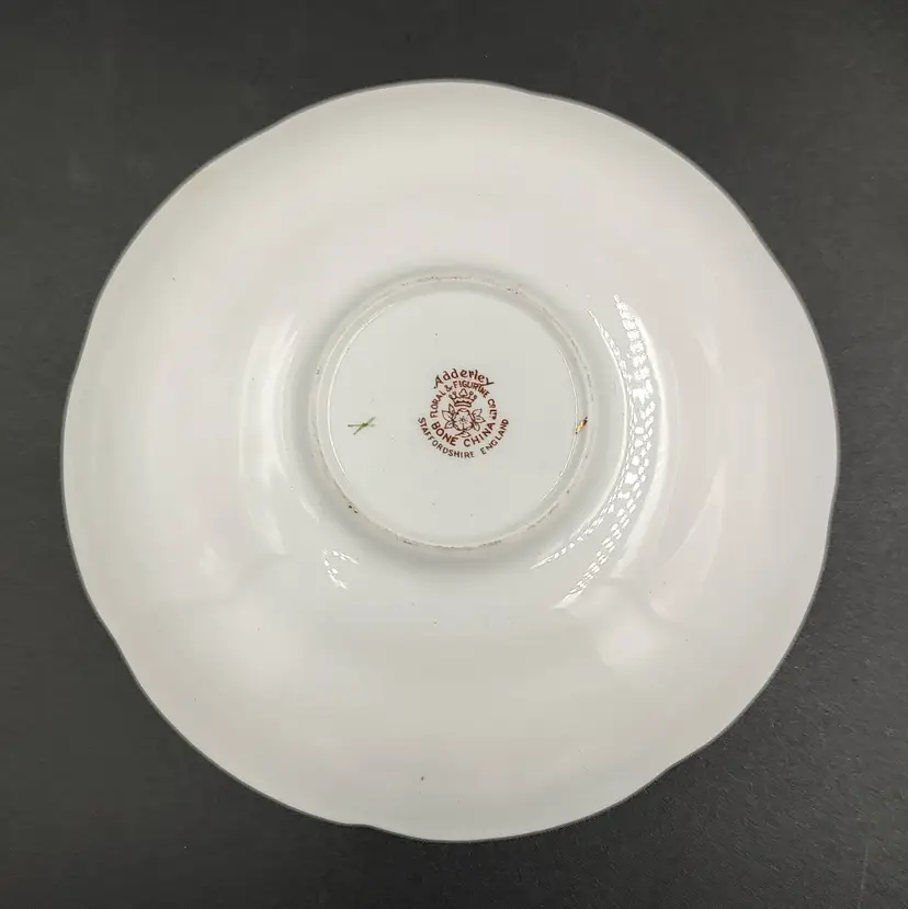 Vintage 1950-1960 Adderley Carnation Floral Pattern Fine Bone China Teacup and Saucer Set. Teacup height 2.5" x diameter 3.5" holds 6 ounces/Saucer diameter 5.5". Teacup has a small crack. Made in England