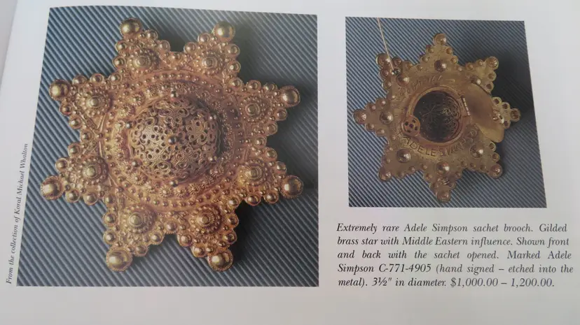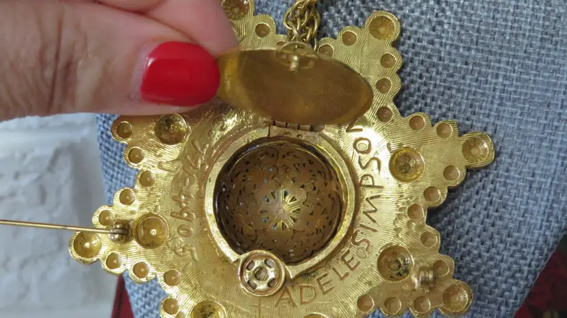 Vtg Adele Simpson book rare gold necklace ,statement, fragrance scent dispenser large signed
