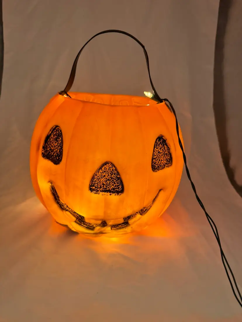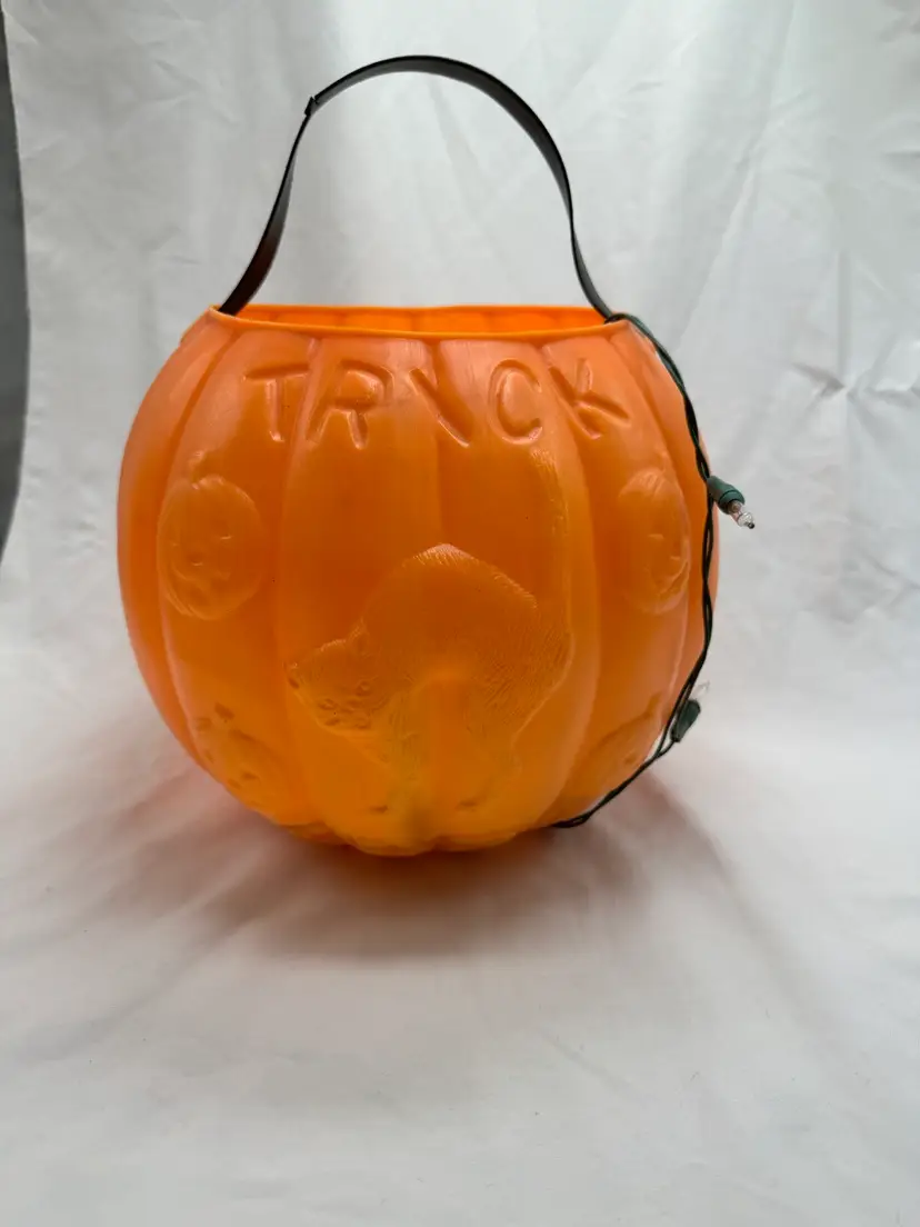 Vintage AJ Renzi Blow Mold Pumpkin. This one has been converted into a little decorative light. It can easily be converted back into its original candy bucket. Excellent, vintage condition. See pictures for measurements.