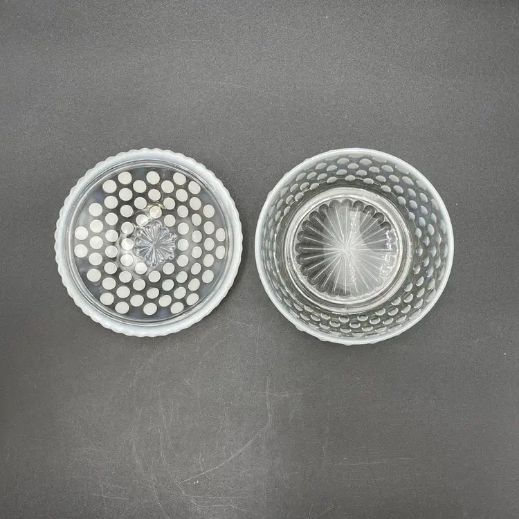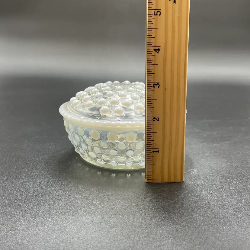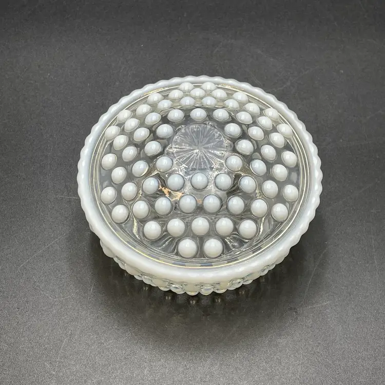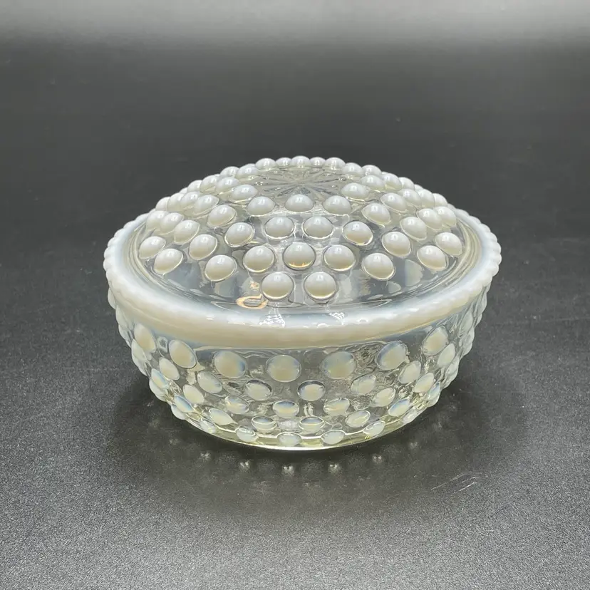 Anchor Hocking Moonstone Opalescent Glass Lidded Puff Jar Vanity Dish