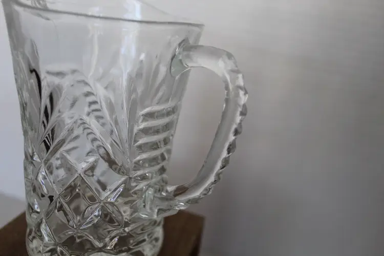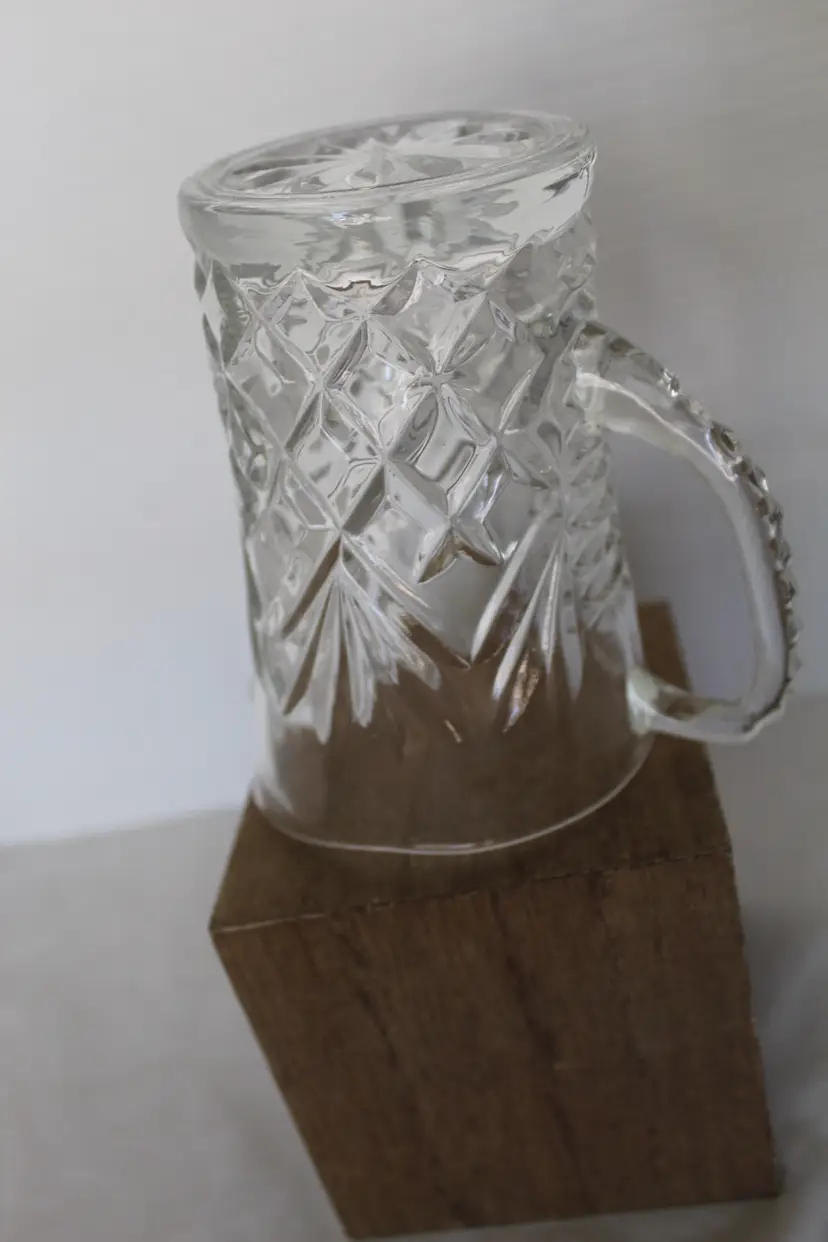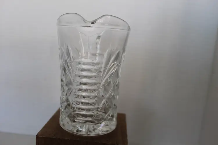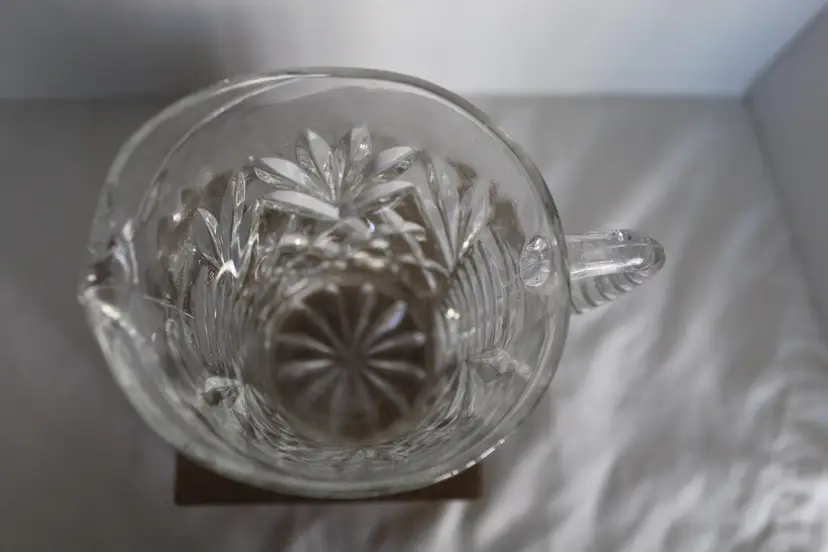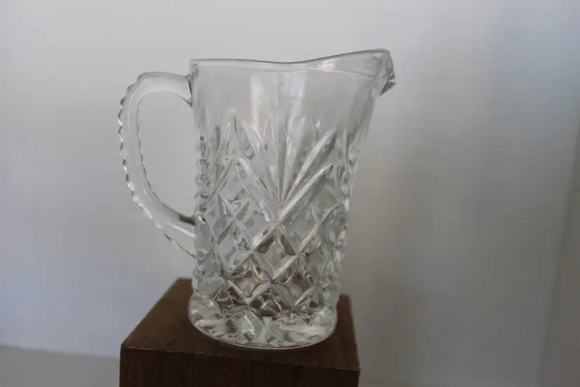 This vintage Anchor Hocking Pineapple Clear Pressed Glass Creamer or Small Pitcher is a beautiful and unique piece from 1967. With a capacity of 10 oz, the round pitcher has a glossy finish and features a pineapple pattern. Hand wash only, this original production style piece is a part of the Early American Prescut/EAPC product line. Made in the United States, this press glass pitcher is a perfect addition to any collection of decorative cookware, dinnerware, and serveware.