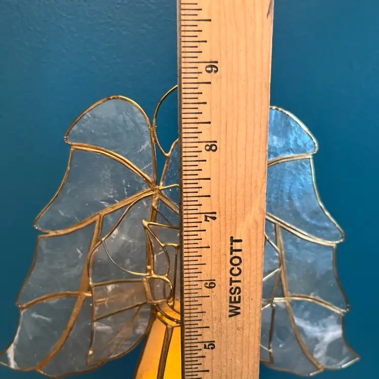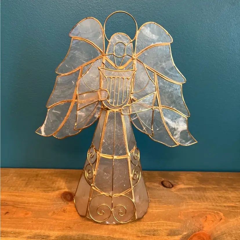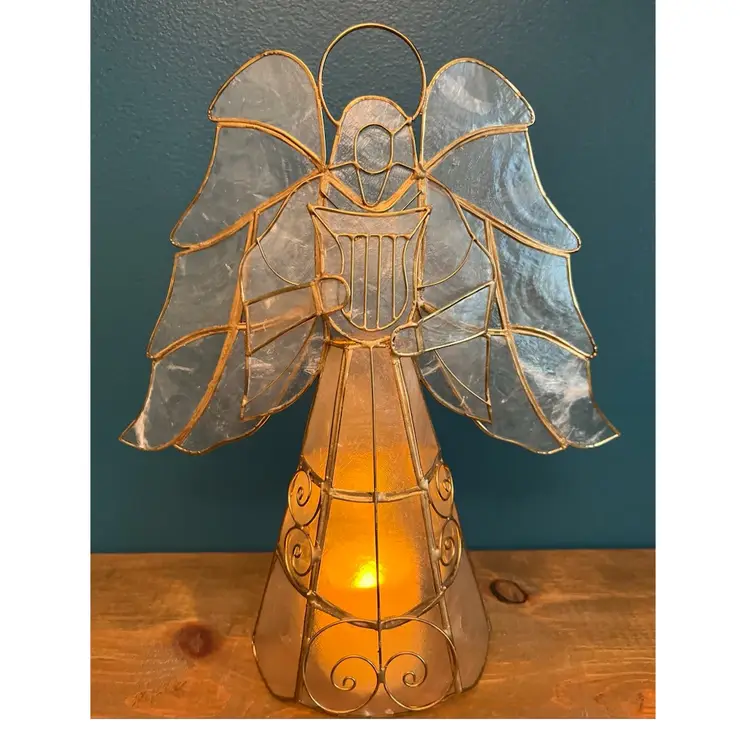 Very pretty Capiz shell delicate Christmas angel that could either be a small tree topper or as a votive battery candle lighted table decor. She is so nicely detailed and will make a nice addition to your Christmas decor! She does have some issues on her wings but they are not broken. See pics