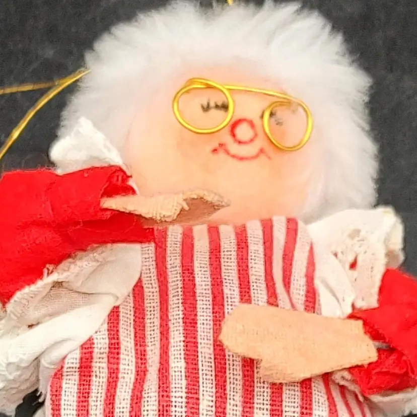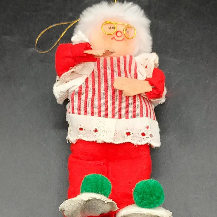 Vintage Annalee? Mrs Claus Posable Christmas Ornament Shelf Sitter in good condition height 6" x width 1" x length 3"