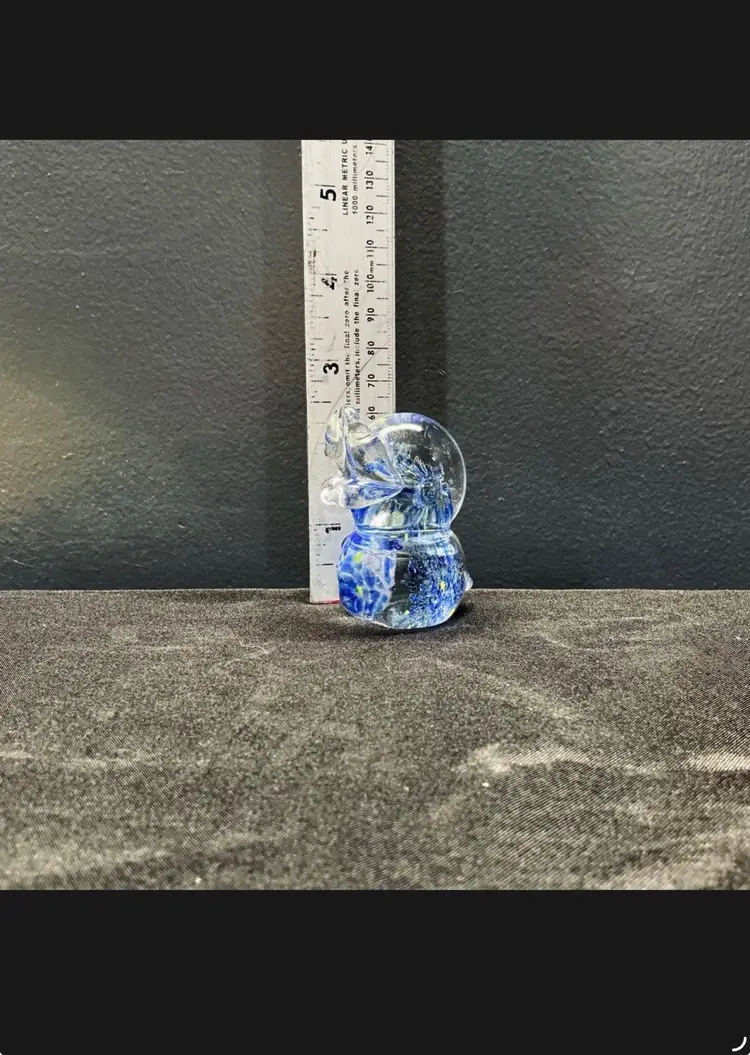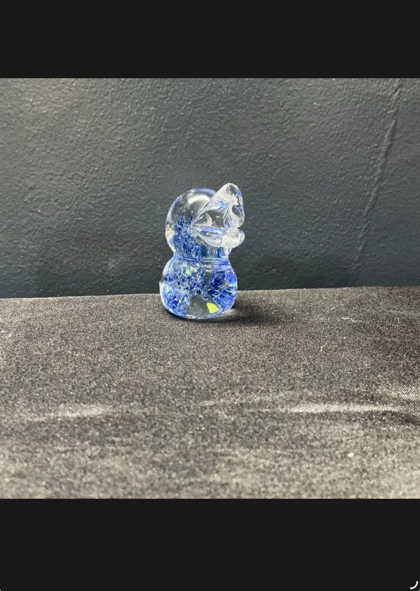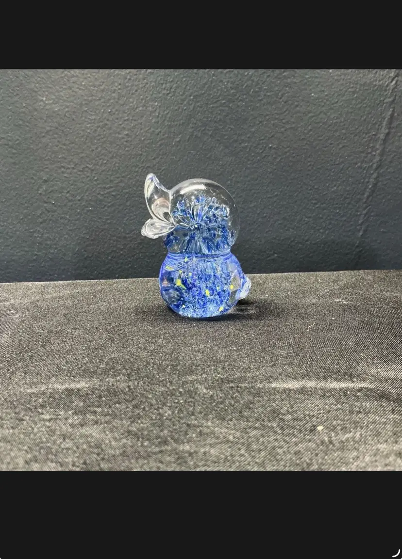 Charming vintage art glass duck figurine, handblown in clear and vibrant blue glass with controlled bubble and frit inclusions. The duck features a rounded body with speckled detailing and a clear glass head and beak, giving it wonderful depth and sparkle when displayed. Height: approx. 3.5” Width: approx. 2.5” Handcrafted, each piece is unique Excellent condition with no chips or cracks Perfect as a collectible, display piece, or thoughtful gift for any glass or duck figurine lover.