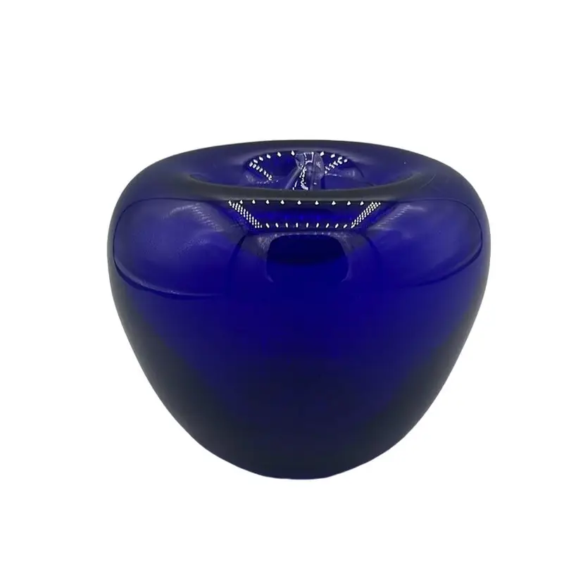 Lovely deep cobalt apple shaped paperweight. The glass is hollow, with great lines and presence.