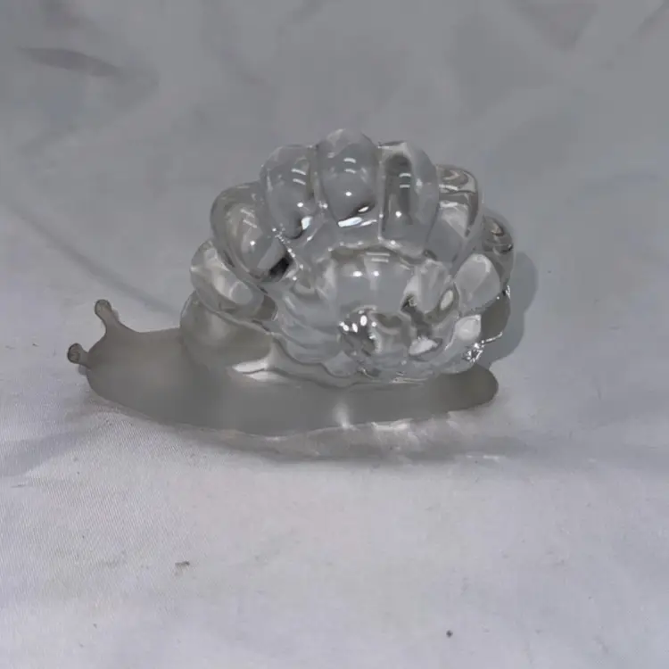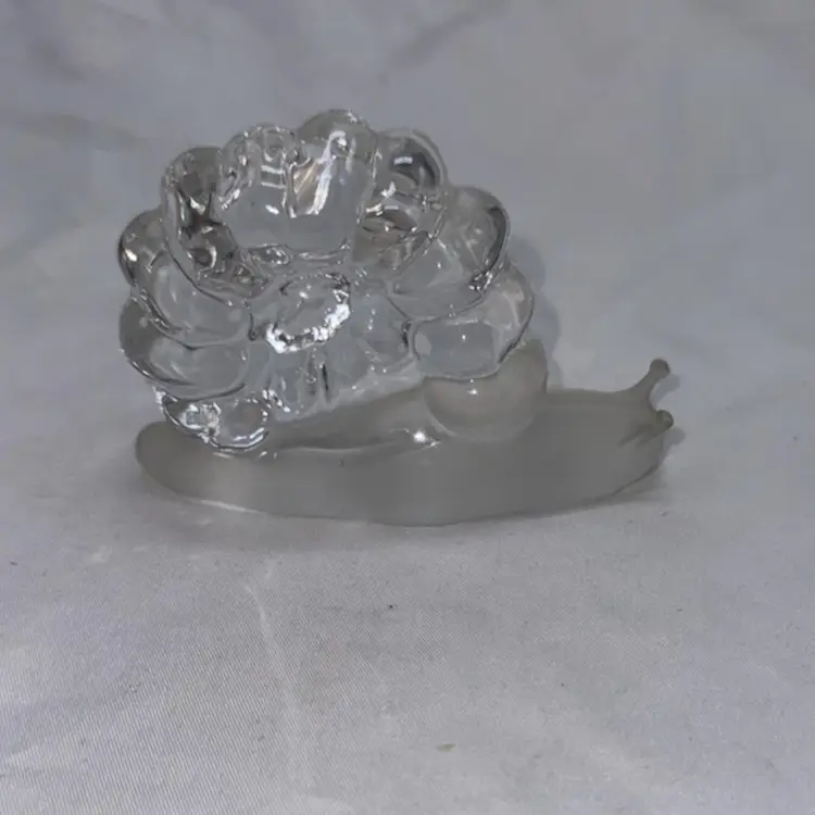 Vintage art glass snail figurine. This snail has a frosted glass body. He is in excellent condition. No chips, no cracks. See pictures for measurements. CK