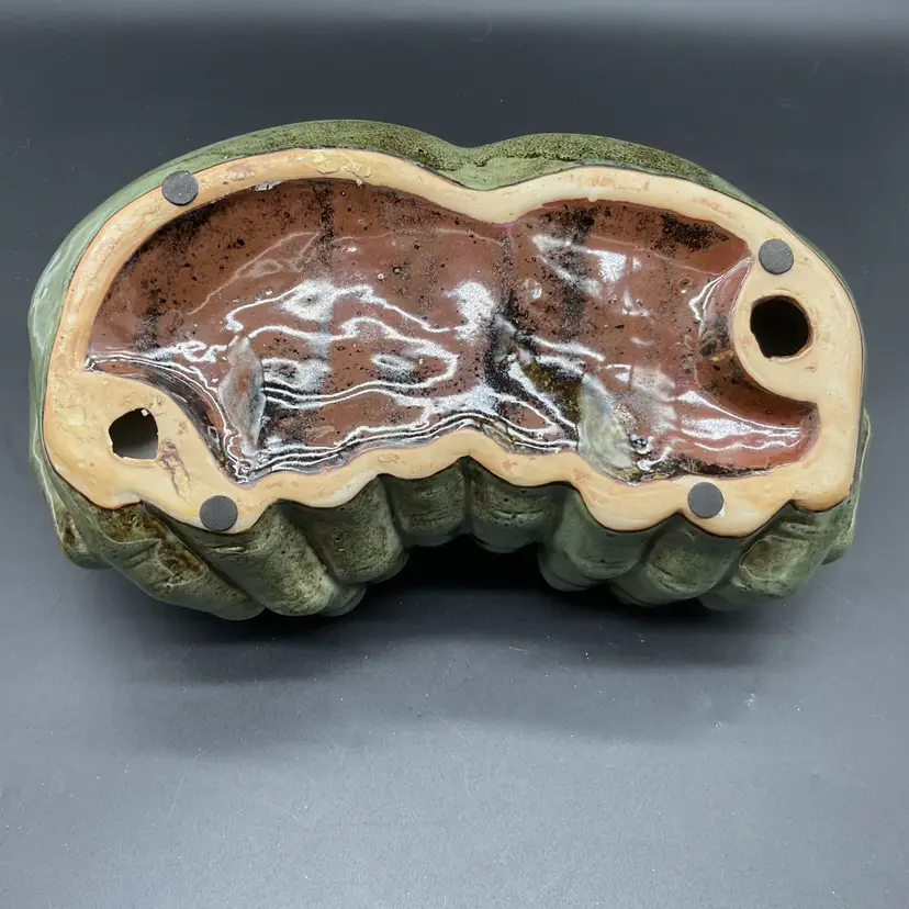 Vtg Art Pottery Ceramic Bird Feeder Sculpture Trinket Dish With Birds On Hands
