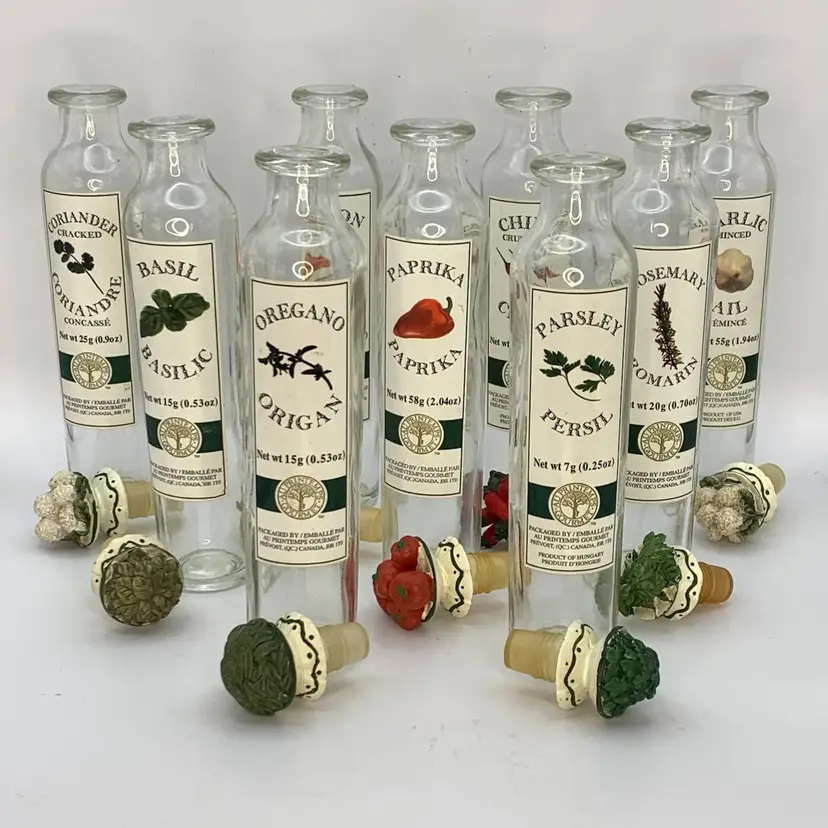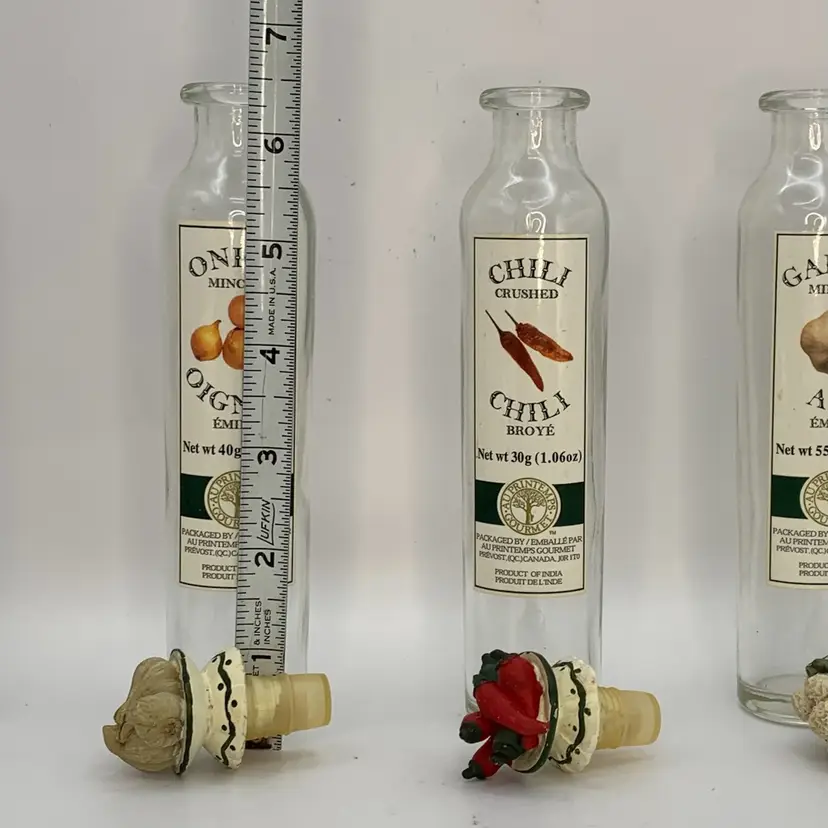 The stoppers on the lids are yellow from age, but they still all fit snuggly in glass jars. Please see all photos for details and measurements. I am happy to answer any questions. Thank you for checking out my listings.