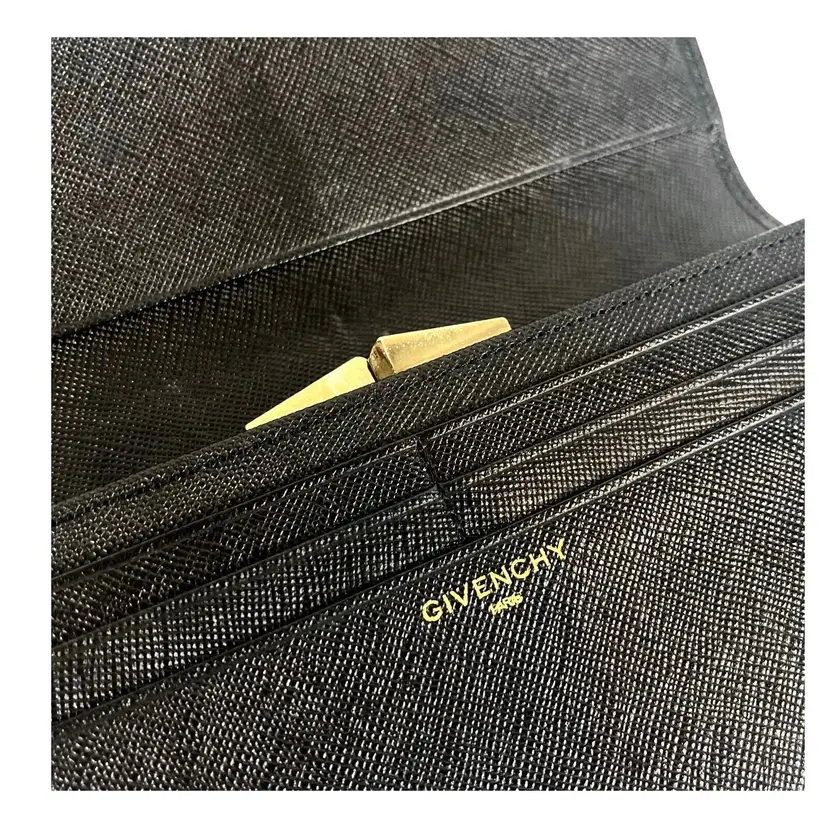 Brand: Givenchy Color: Black Size: 7.5 x 4 Inches Style: Bifold Wallet Item Length: 7.5 in Item Width: 4 in. Department: Unisex Type: Wallet Accents: Zipper, Logo Material: Leather Vintage: Yes Theme: Classic Pattern: Solid Features: Credit Card, Durable, Lightweight, Fashion