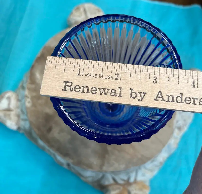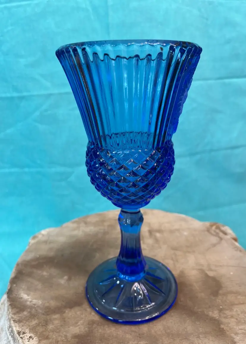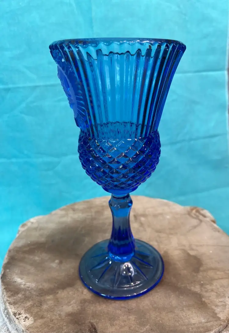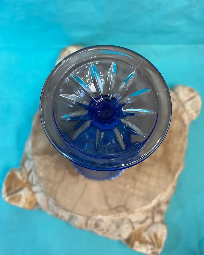 #815 VTG Avon 1976 Fostoria Glass Cobalt blue With Martha Washington goblet/candle Holder with box. (No candle) Measures 8” tall and 3.5” opening. No chips or cracks.