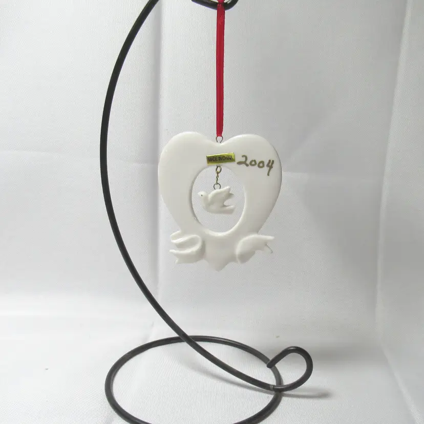 Vtg Avon Heart Shaped Ceramic Stars and Stripes Ornament Rhinestones as stars Peace Dove Hangar 3" x 2.75" My mother wrote the year it was given as a gift on the back (2004) In good condition "in box" with only issue being the year written on the back