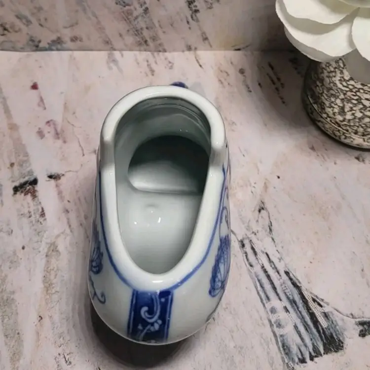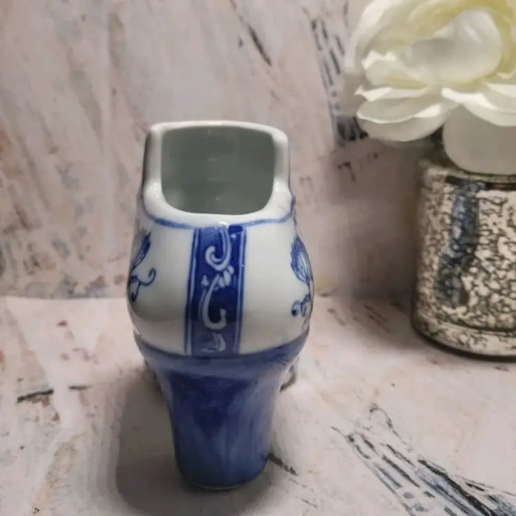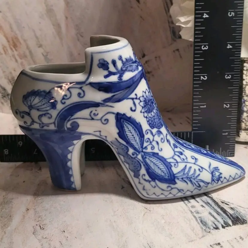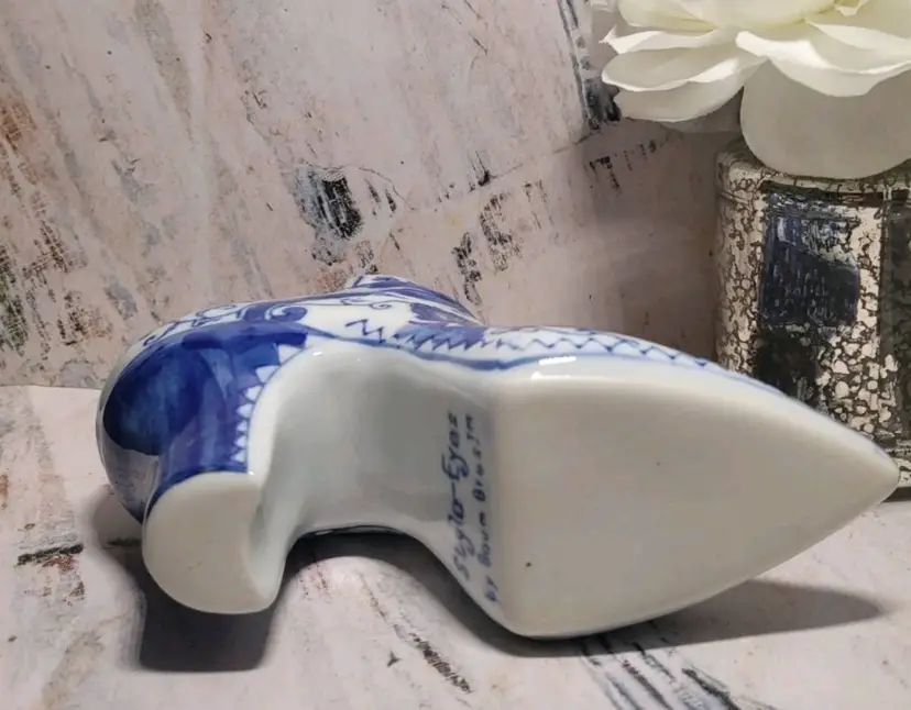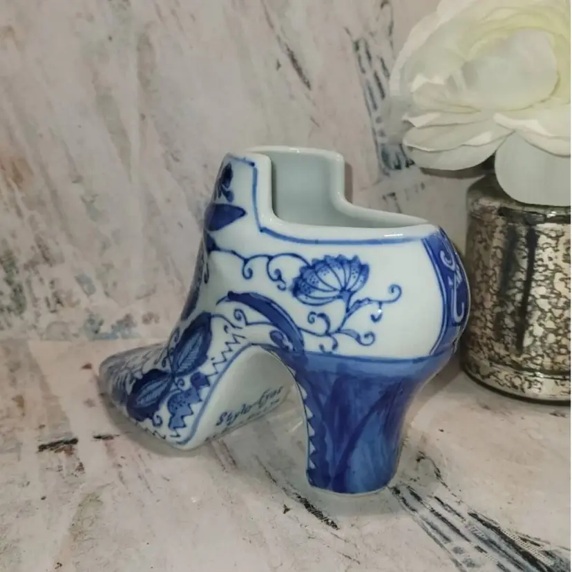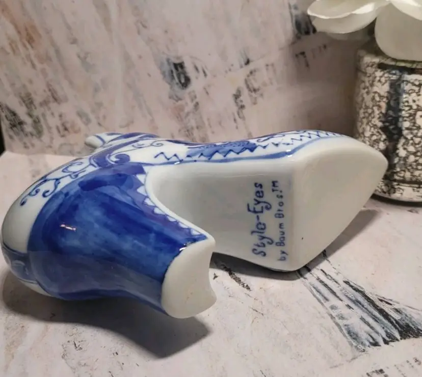 Vtg Baum Bros Styles Eyes Ceramic Porcelain Shoe Boot Chinoiserie Hand Painted Cobalt Blue on White. Beautiful design throughout. It's very heavy and sturdy. Paperweight, trinket holder, planter, so many uses!