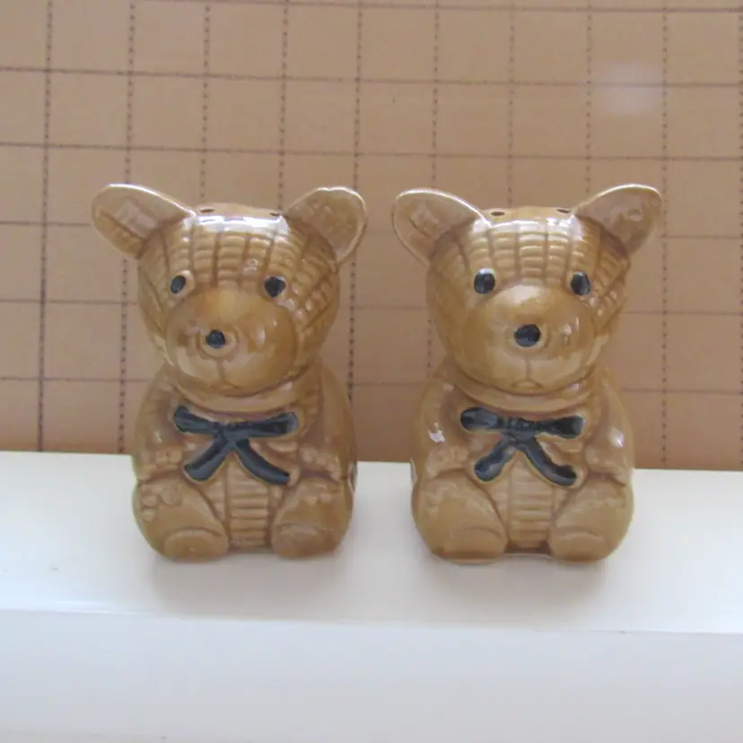 Vtg Bears w/Bows Salt and Pepper Shaker Set