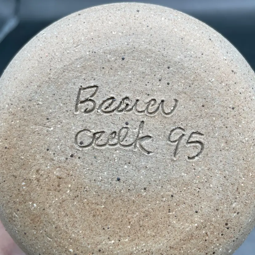 Approximately 4” tall x 3.75” diameter. Signed. No chips or cracks.
