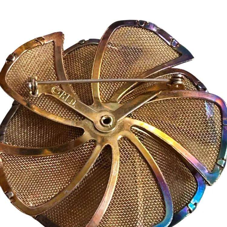 Signed BED layered mesh petal flower gold tone with AB highlights on edge of petals. In excellent vintage condition. Please see photos as they are part of the description.