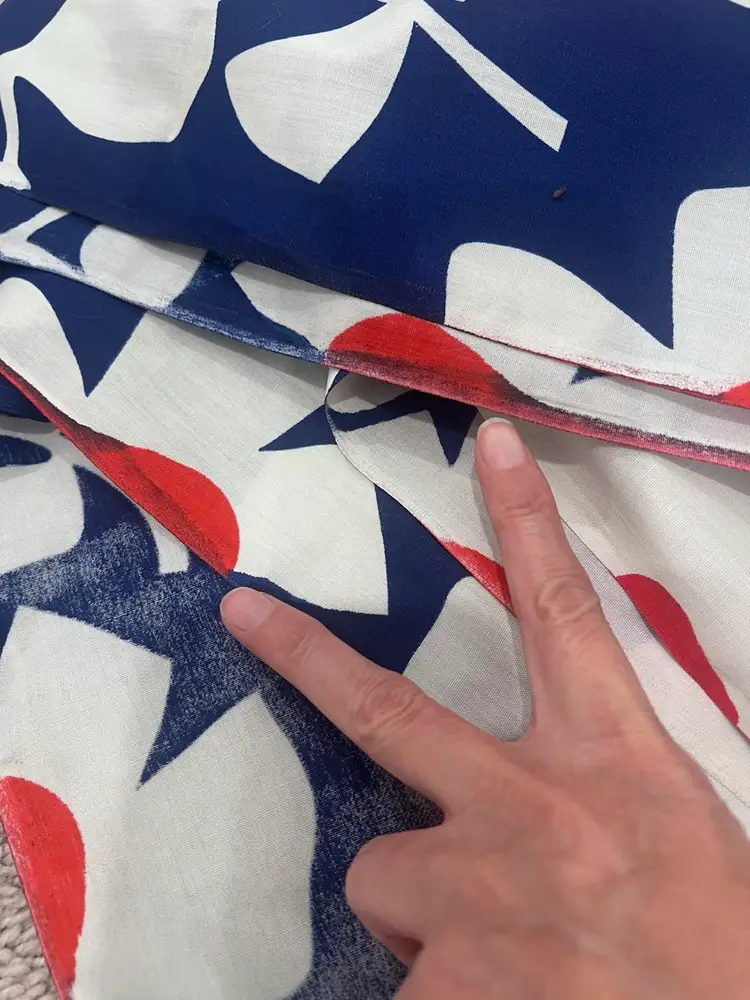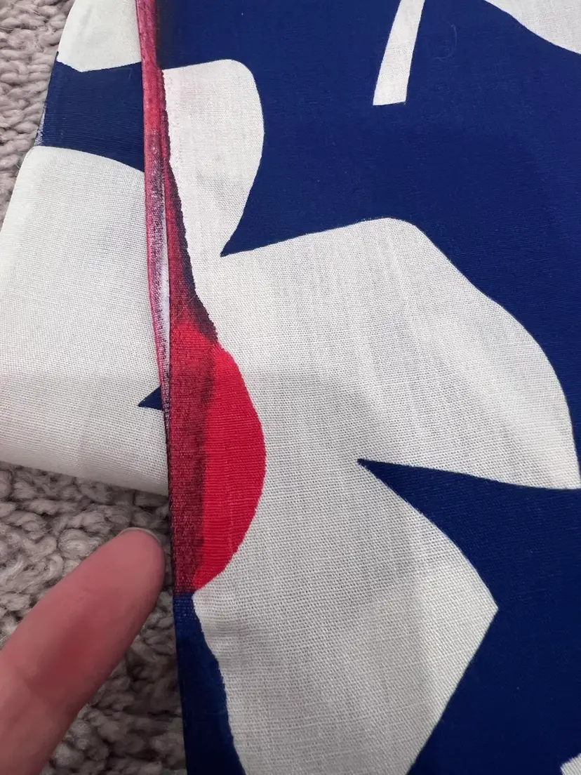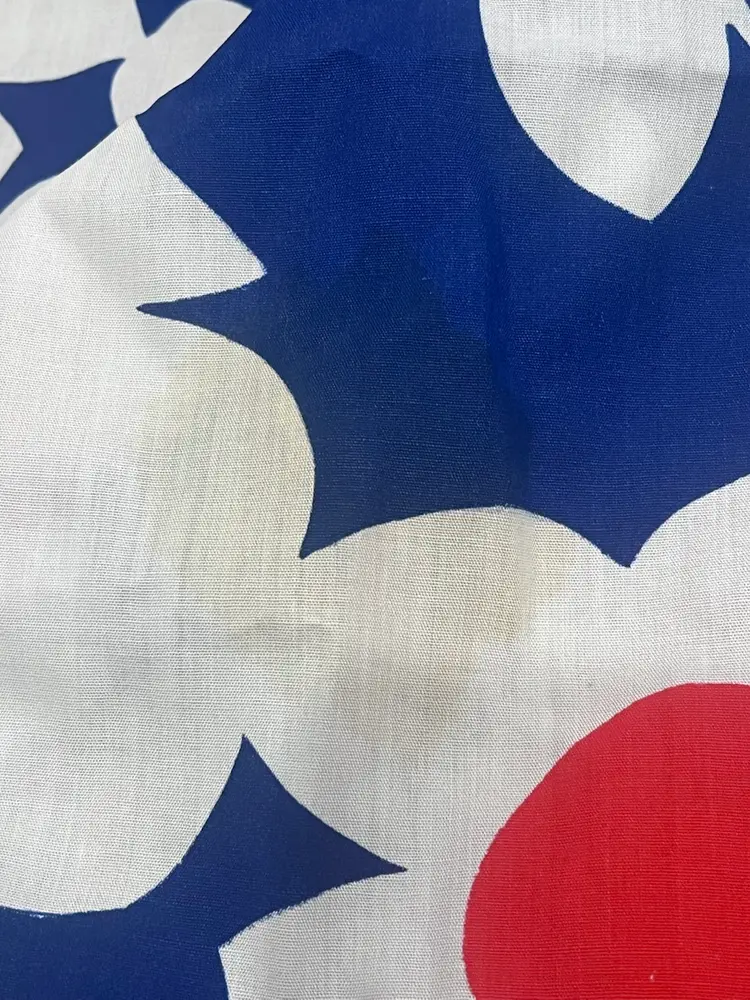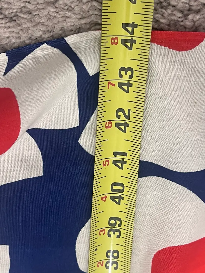 VTG Big Flower Print Red White And Blue 4th Of July Fabric 3 Yards X 1 Yard Slightly more fabric than 3yards X 1 There is a light brown mark as pictured and on the edging of one side looks like ink bled….I’m not certain what it is… I haven’t laundered this piece. We choose ground shipping but can revise if requested Please feel free to ask any questions or concerns before purchasing Thank you for your time and interest Blessings, Bonnie & Darren :-)