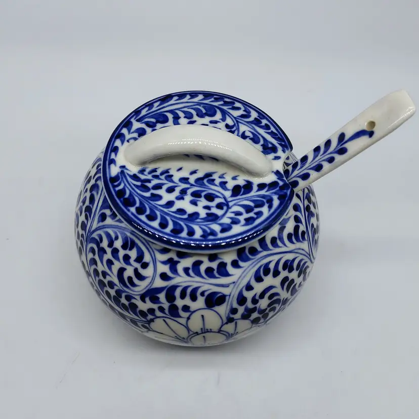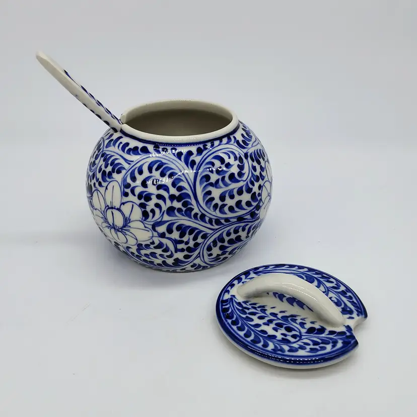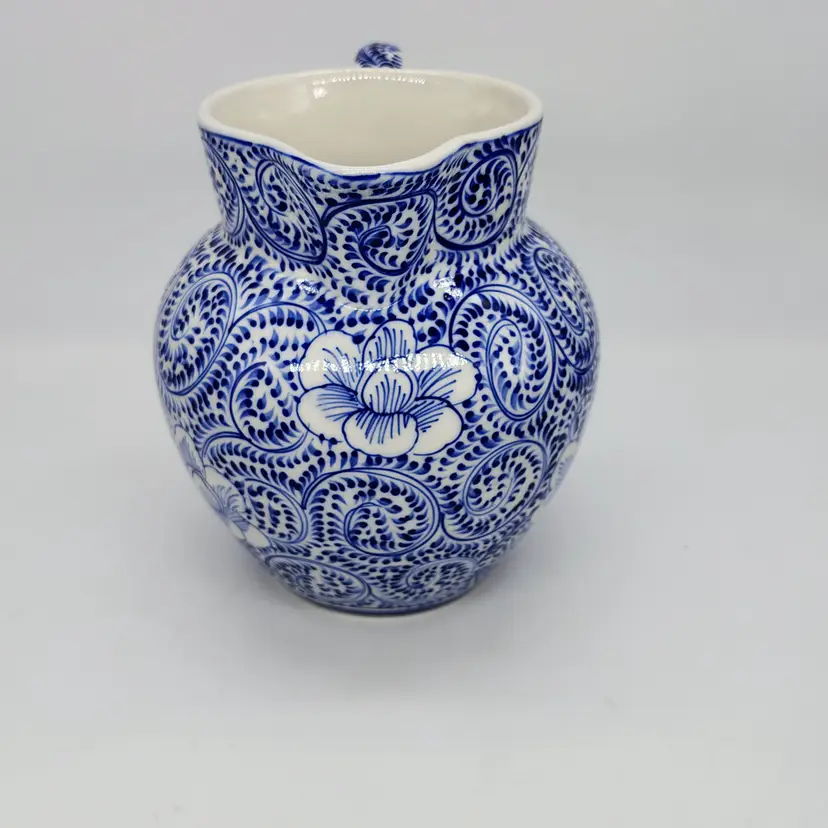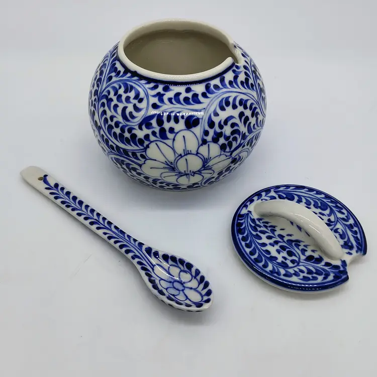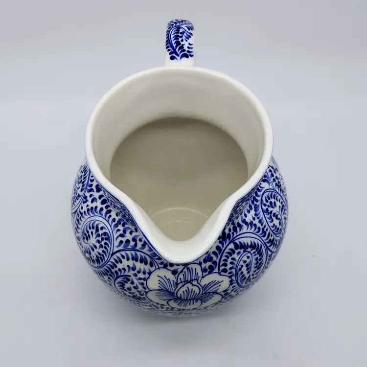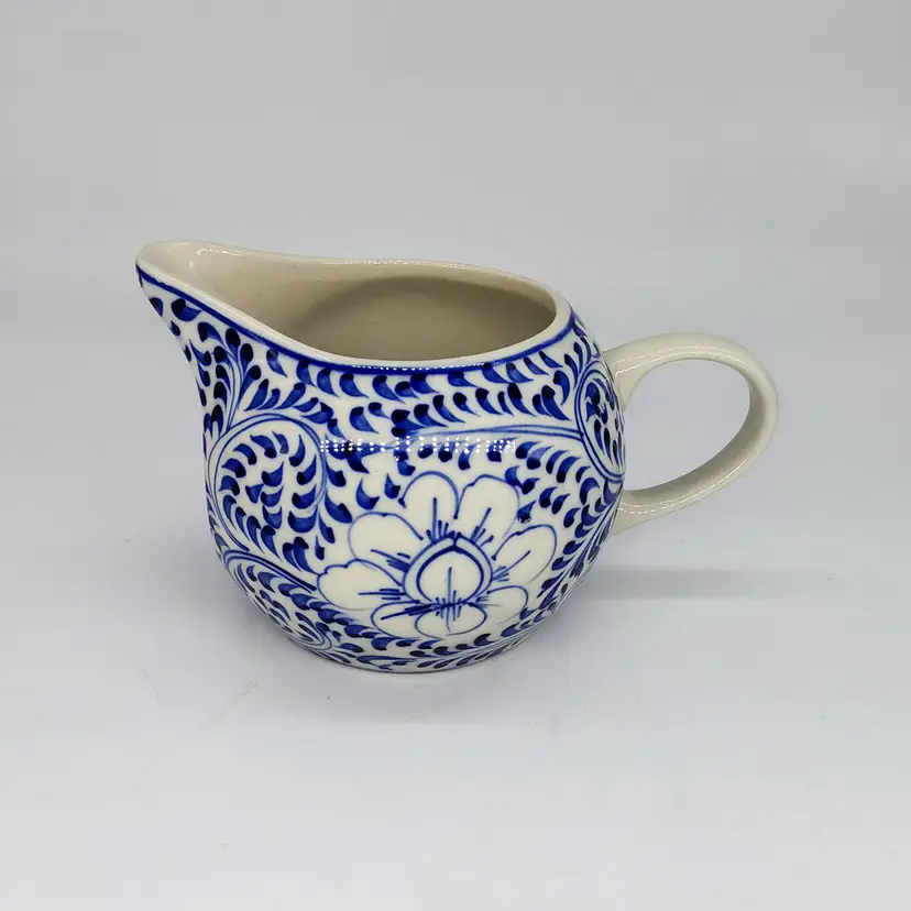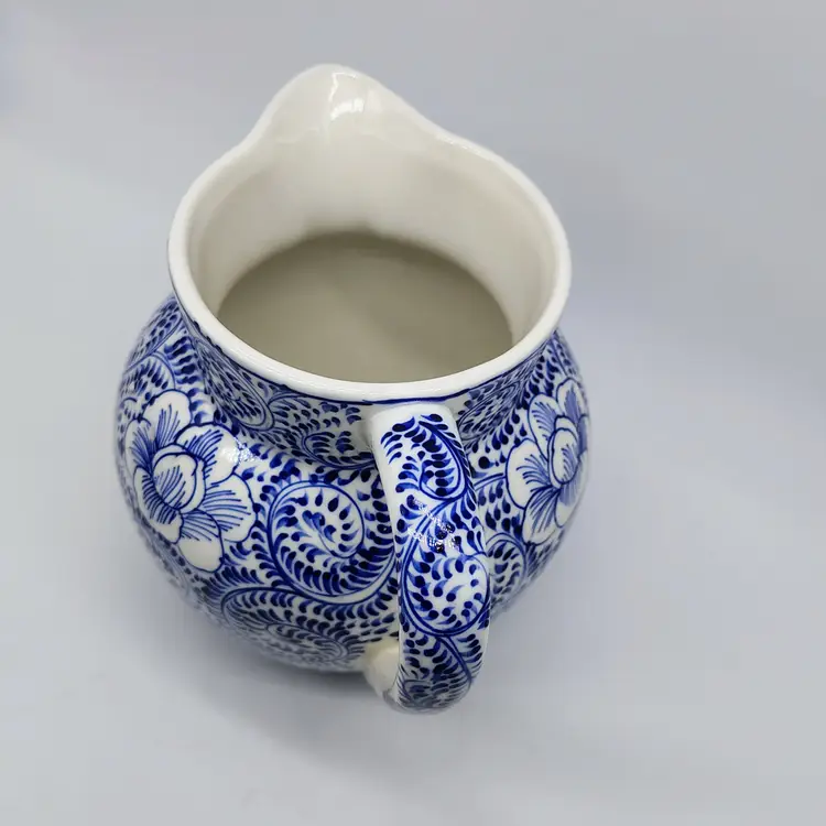 This vintage blue and white floral ceramic pitcher, creamer, and sugar bowl set is a charming addition to any kitchen or dining table. The set features a classic floral pattern on a crisp white ceramic material, adding a touch of elegance to your serveware collection. Perfect for serving cream, sugar, and water with a vintage flair, this set is both functional and decorative, making it a unique and stylish choice for any home.