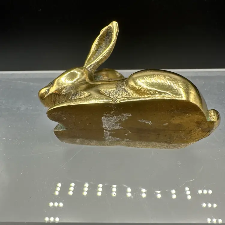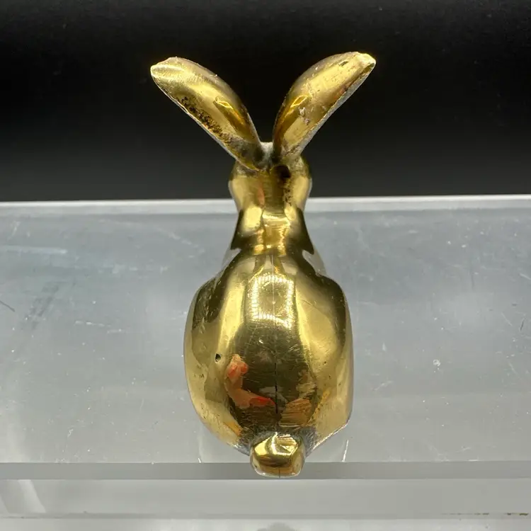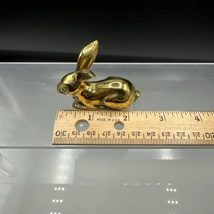 Brass Bunny Hare Cottontail Figurine Home Decor 2” x 2”