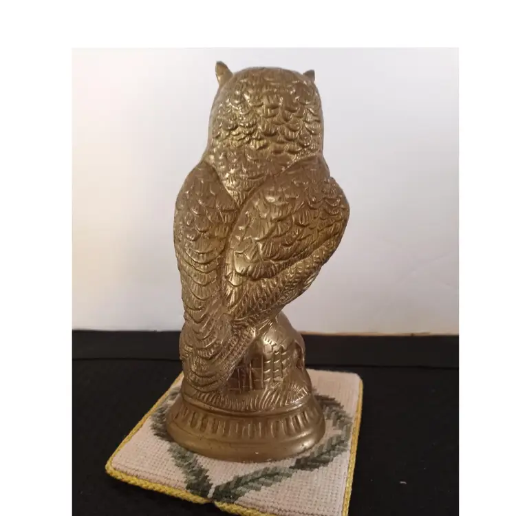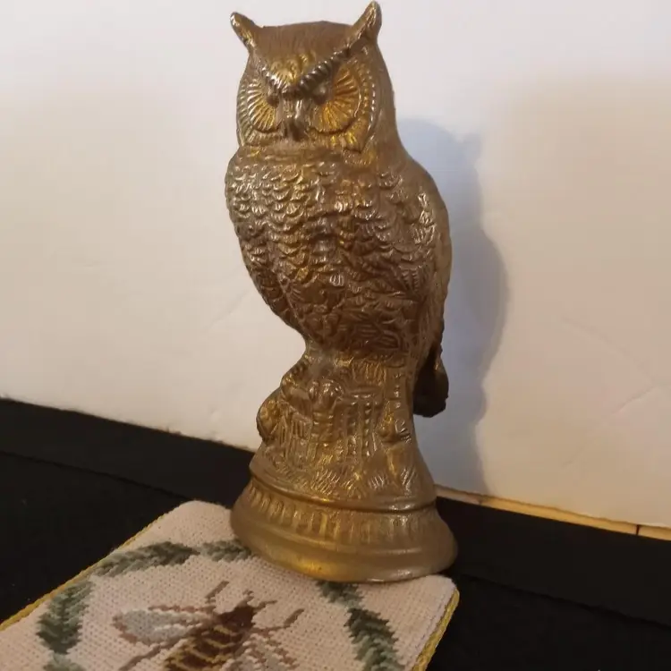 Beautiful Brass Owl figurine, sculpture, 6" tall. 4.5" wide, Made in India, 1980s