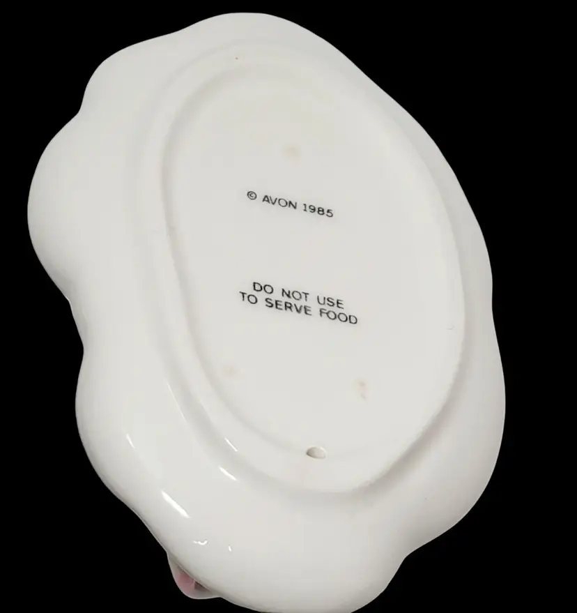 – Occasion: Easter – Color: White – Material: Ceramic & Porcelain – Year Manufactured: 1985 – Modified Item: No – Subject: Rabbit – California Prop 65 Warning: n/a – Brand: Avon – Department: Adults – Type: Trinket Dish – Theme: Advertising, Animals & Dinosaurs – Features: Fixed Edition – Time Period Manufactured: Modern (1960-1990) – Country/Region of Manufacture: Japan – Handmade: No