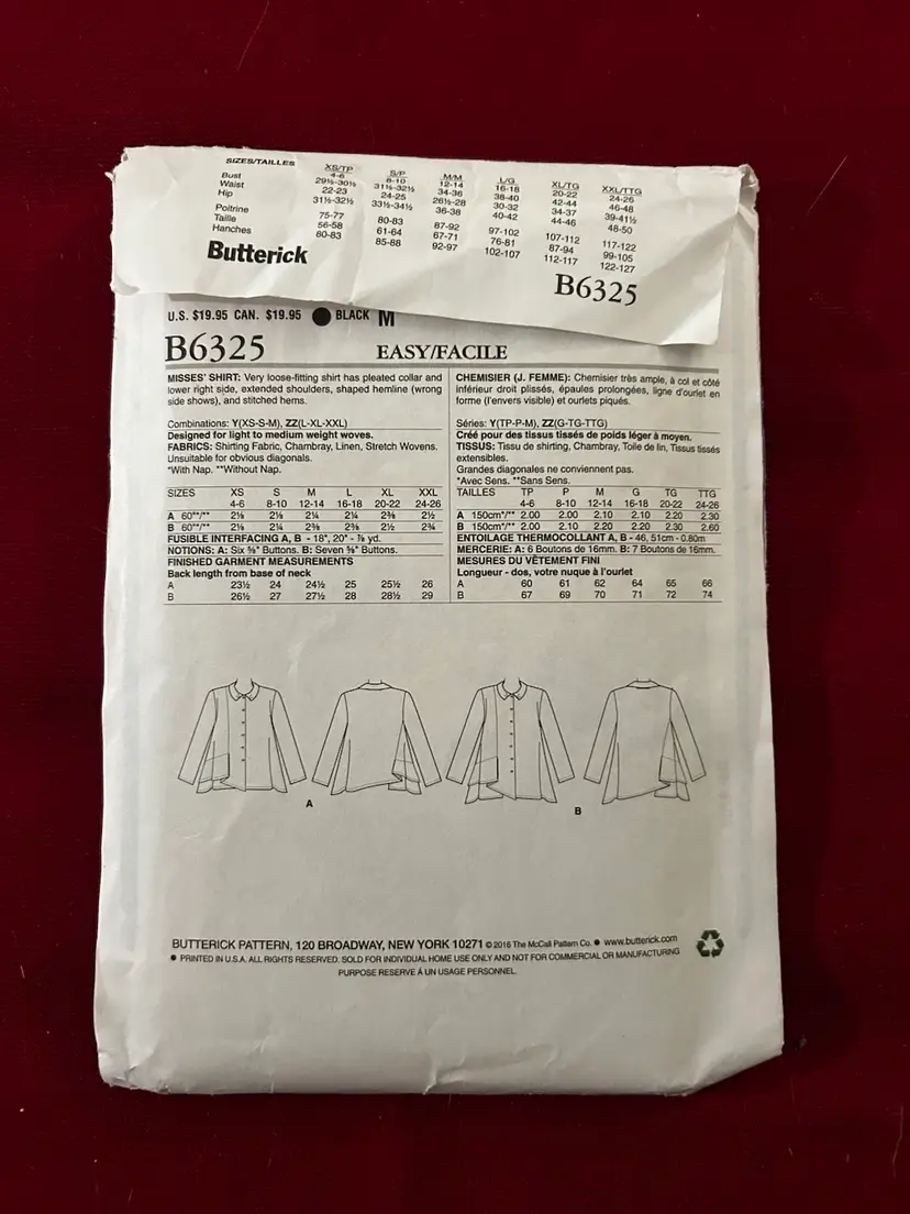 Vtg Butterick Pattern B6325 Assymetrical Shirt L XL XXL please see photos. Let me know if you have any questions. Offer seriously considered. Thank you for stopping by.