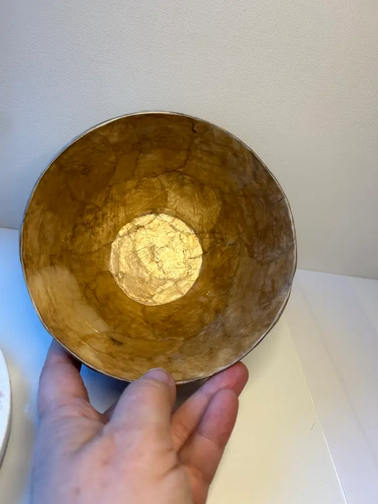 Vintage Capiz Shell Decorative Bowl. Laquered/Sealed Finish.