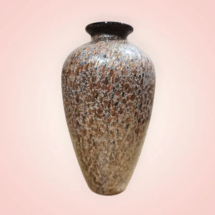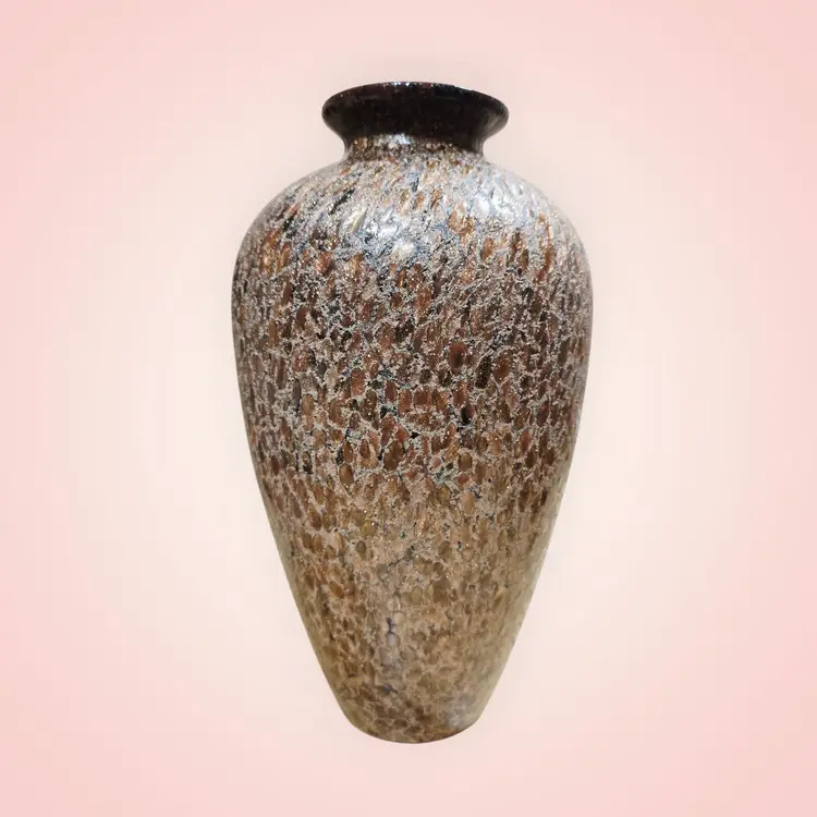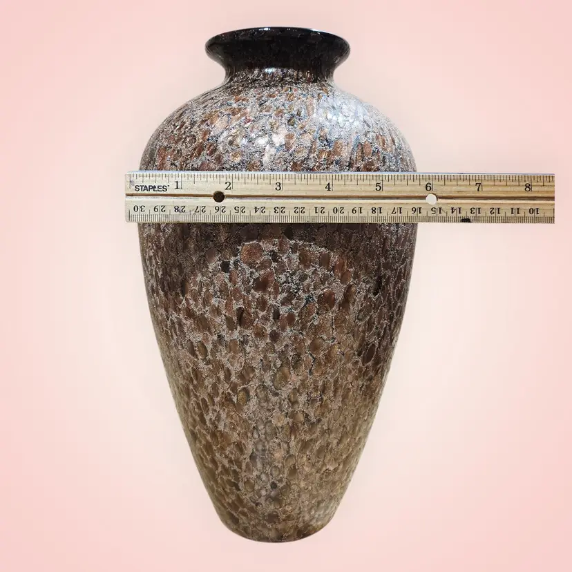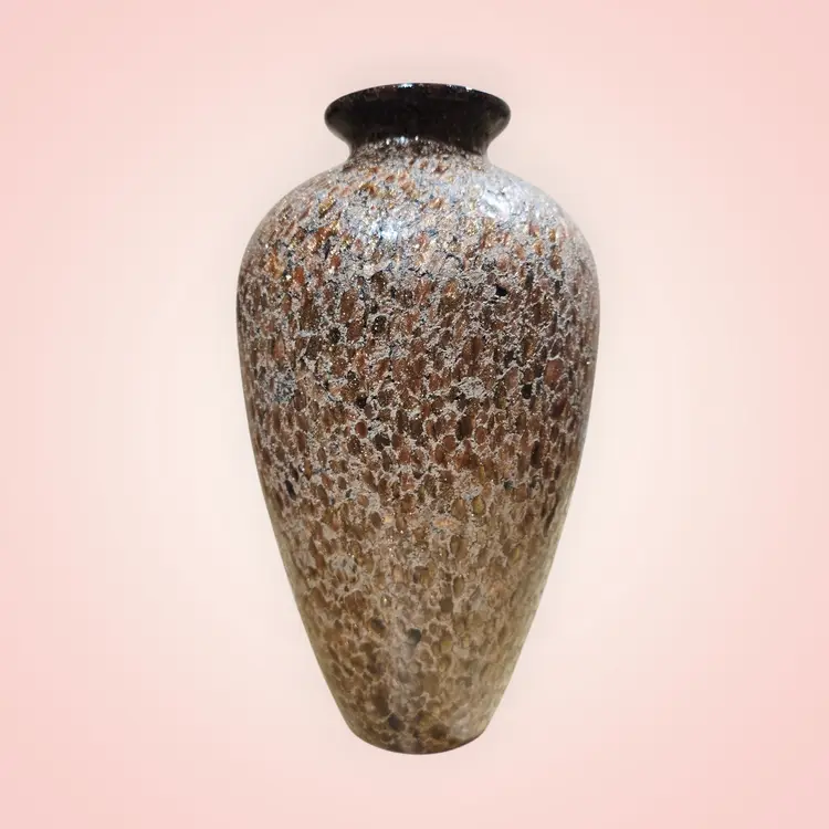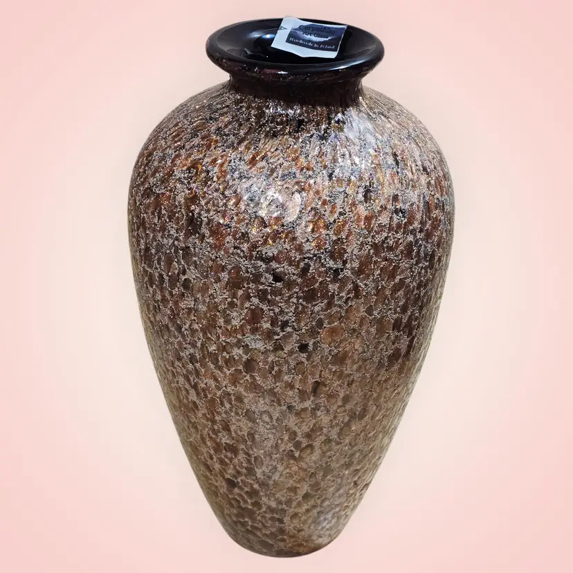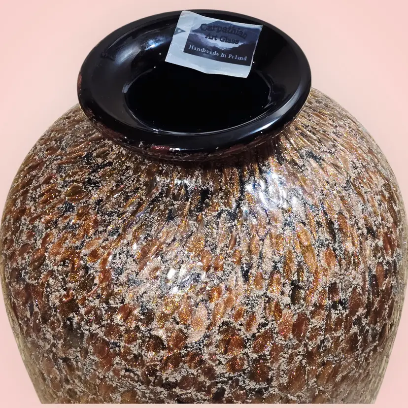 Vtg Carpathian Art Glass Hand Blown Vase In Brown and Copper Glittery Textured
