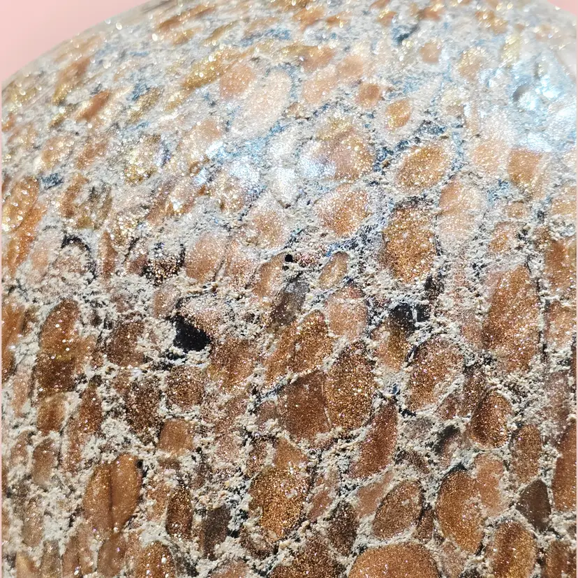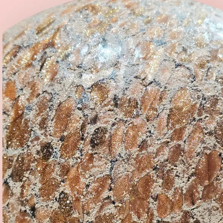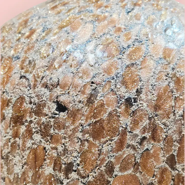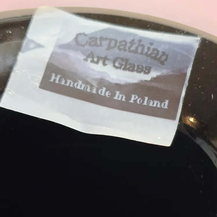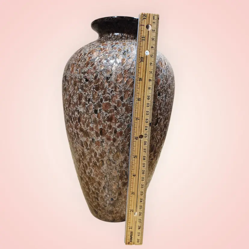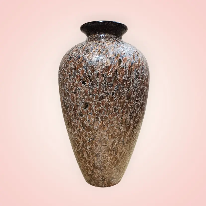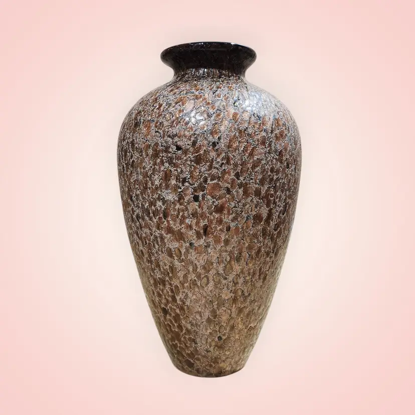 Vtg Carpathian Art Glass Hand Blown Vase In Brown and Copper Glittery Textured