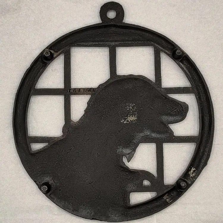 Vintage Cast Iron Retriever Trivet in good condition missing rubber foot pads height 0.5" x diameter 6".Made in Taiwan