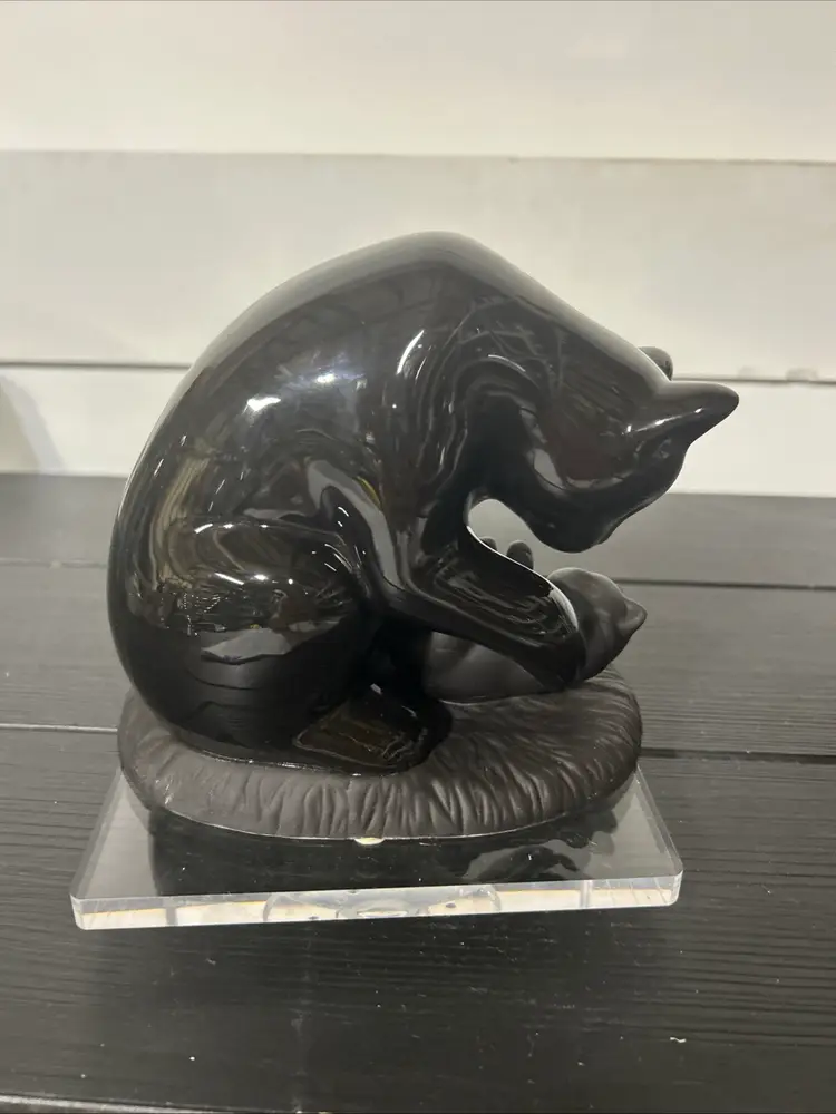 Vtg CERAMIC 7” CAT Mother and Child Kitten black Figurine.Decorative TAIWAN