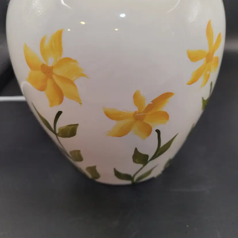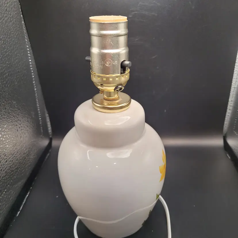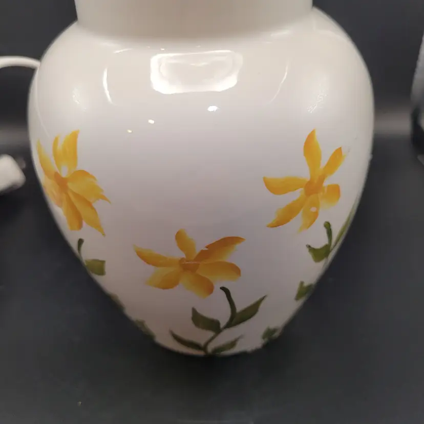 Brighten up your space with this charming vintage ceramic lamp base, featuring a delightful yellow floral design. Perfect for adding a touch of retro elegance to any room.