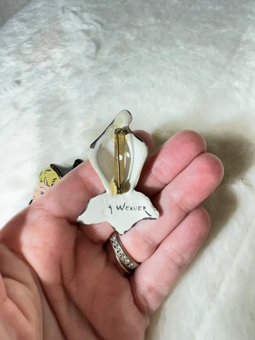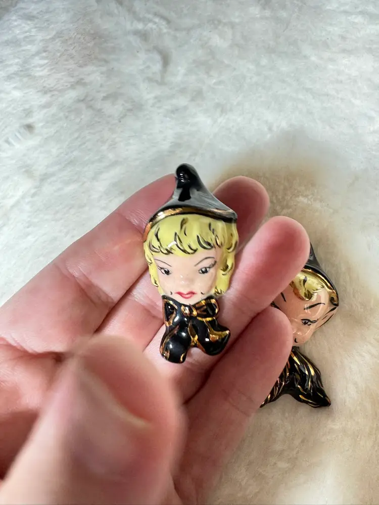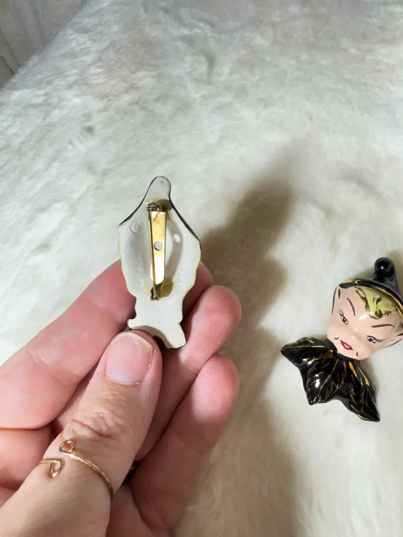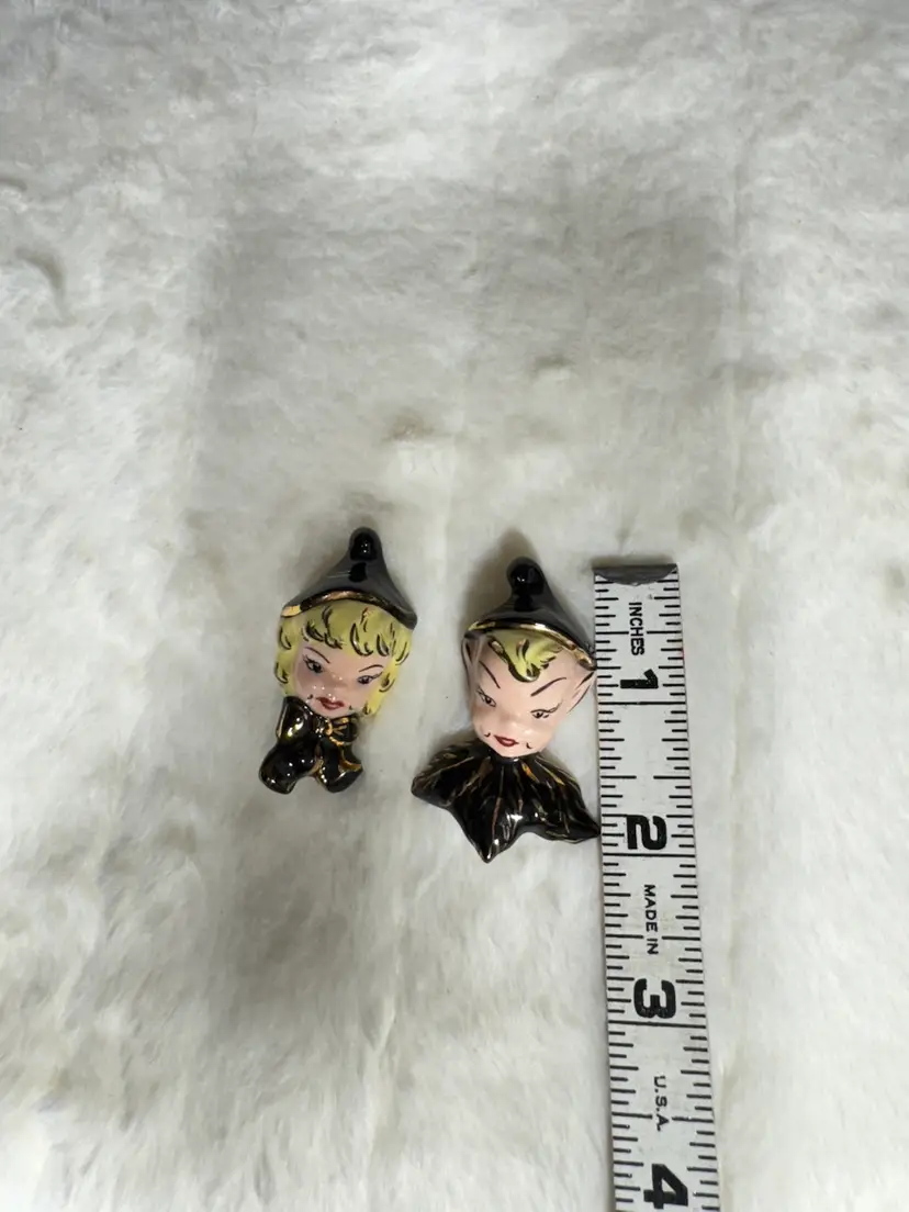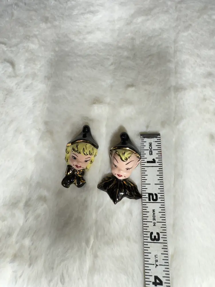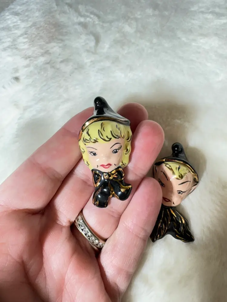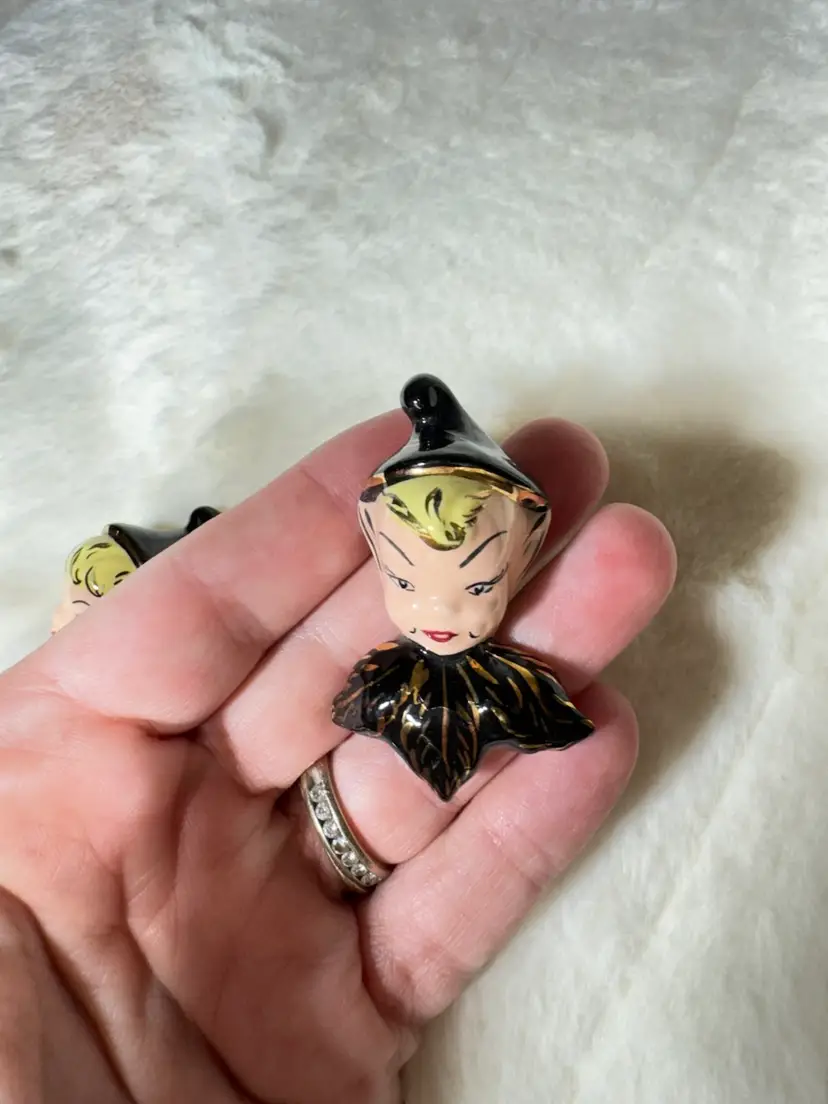 Vintage mid century ceramic pixie pins. This set includes the boy pixie and the girl pixie. They are beautifully painted and in excellent condition. No chips, no cracks. See pictures for measurements.