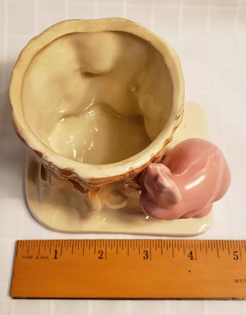 See all photos for quality and measurements. Notice the last two photos: some crazing in the glaze and slight crack on top of the stump.